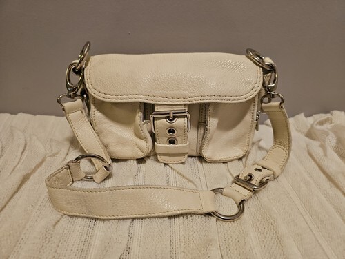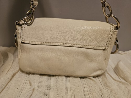 - ROOTS CANADA Emily Genuine Leather Shoulder Bag Purse Clutch Chalk White