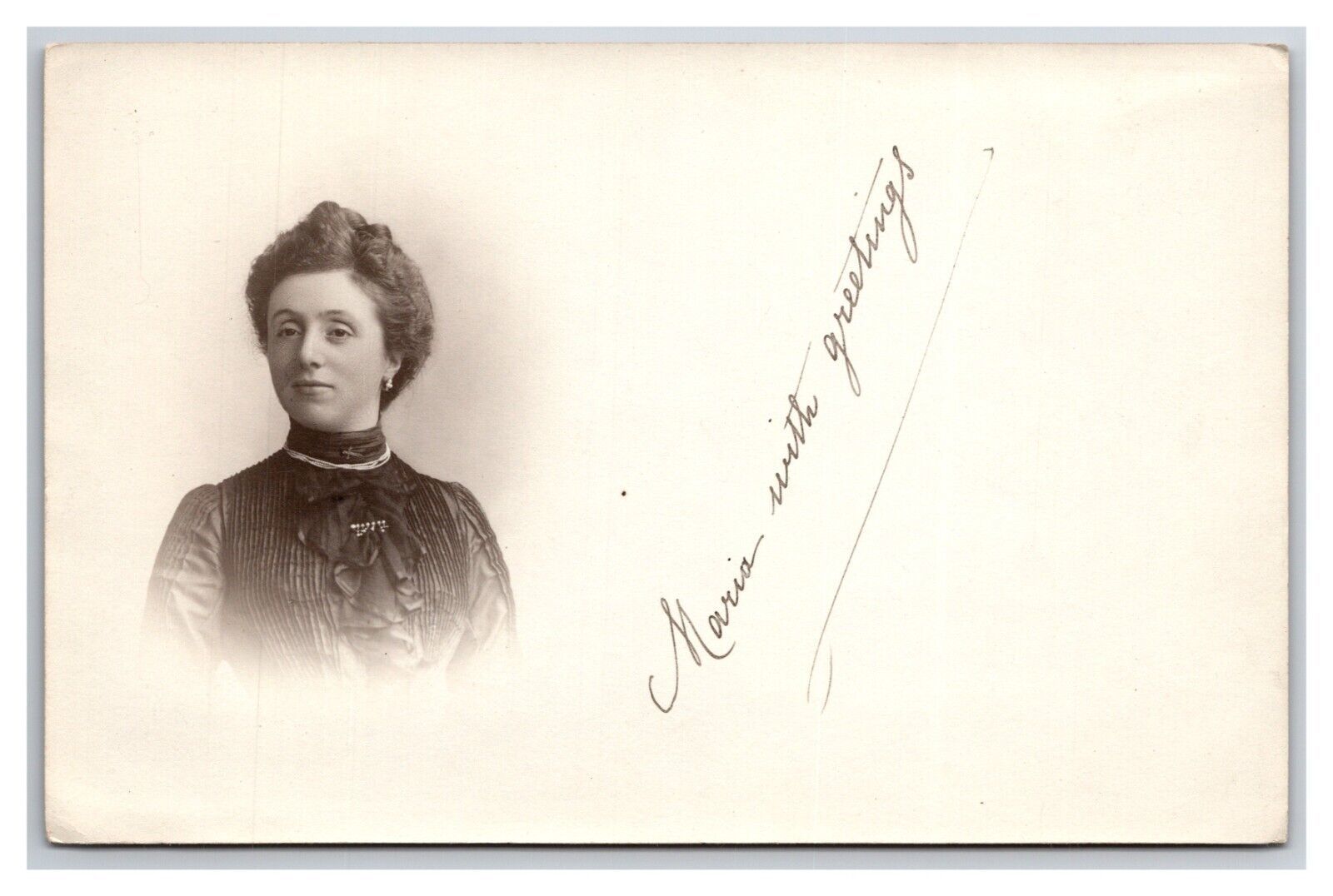 - RPPC Portrait of Beautiful Woman In Black Maria W Greetings UNP Postcard K18