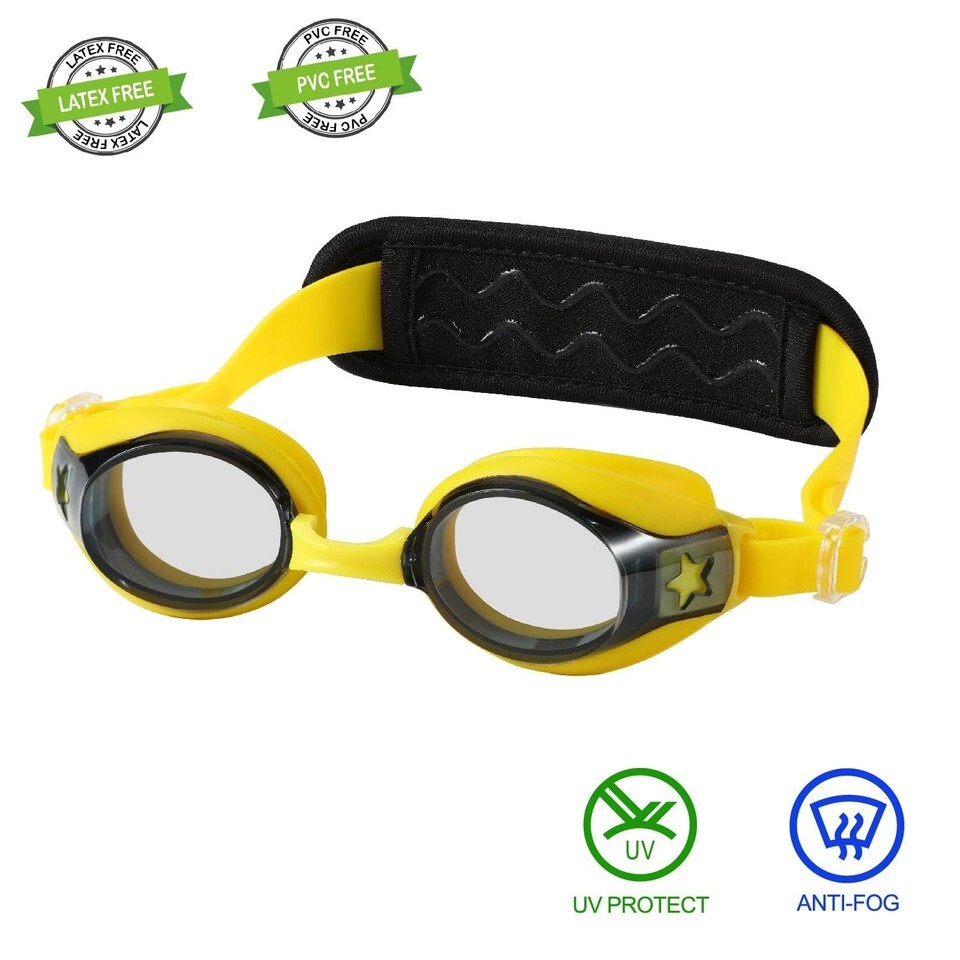 # Toddler Swim Goggles have Optical-grade PC lenses with a) anti-fog coating for clear visions, b) UV protection for protection harm from UVA/UVB