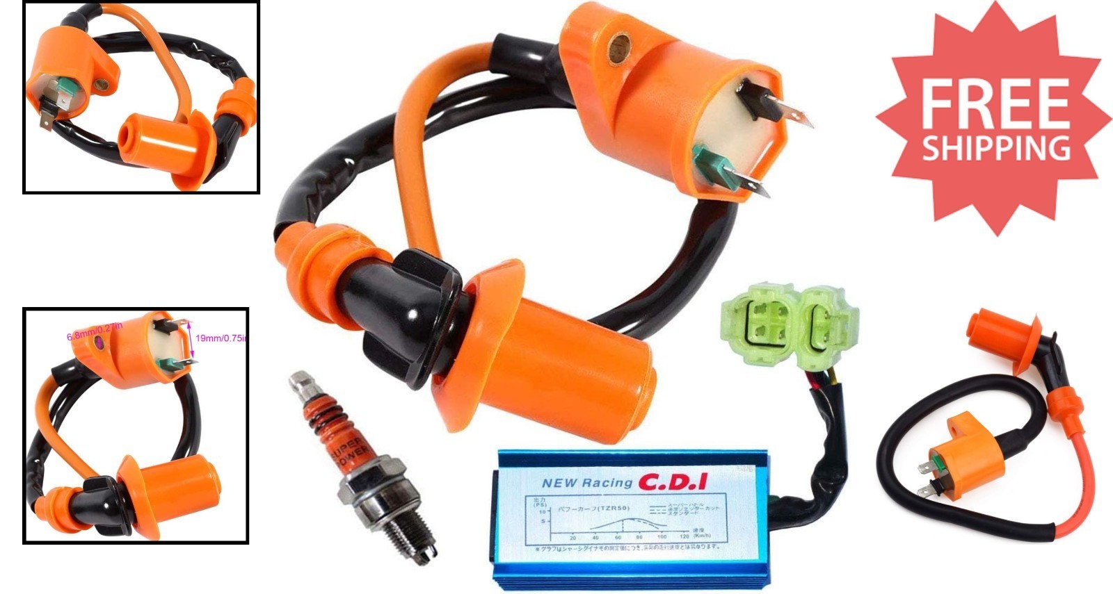 - Racing Ignition Coil Set for GY6 50cc-150cc with CDI & 3 Electrode Spark Plug