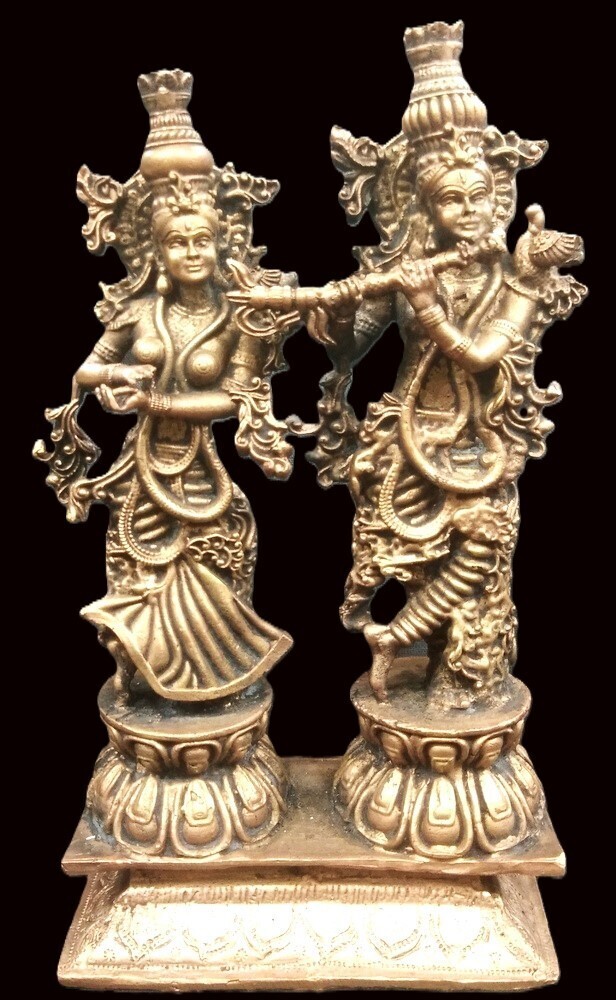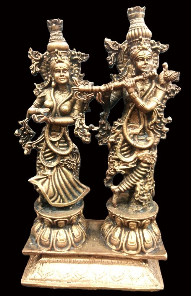 - Radha Krishna Idol In Pure Solid Copper - 7 inches