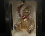 2009 Christmas teddy bear gold and red glitter ornament celebrations by Radko. Item is still in original box never opened however box does show somewhere and scuffing from age this however does not affect contents within the box so it is still considered new in box.