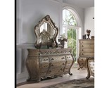 The Ragenardus dresser is an impeccable example of truly memorable luxurious traditional design. This eleven-drawer vintage oak dresser features a detailed French style front and English back in a stunning Bombay shape case, Felt-Lined top drawer, side metal glides, scrolled legs and antique pull-ring handles. This beautiful dresser will bring the perfect traditional style to any bedroom.