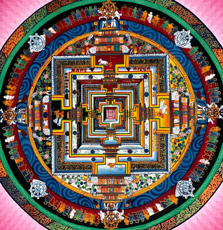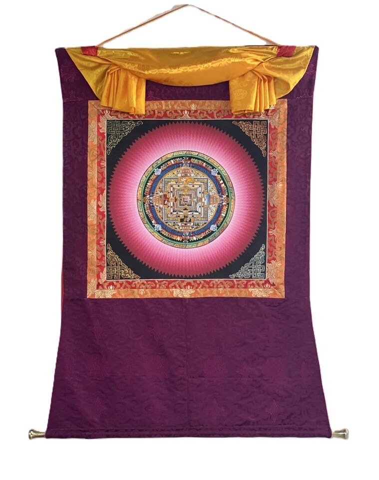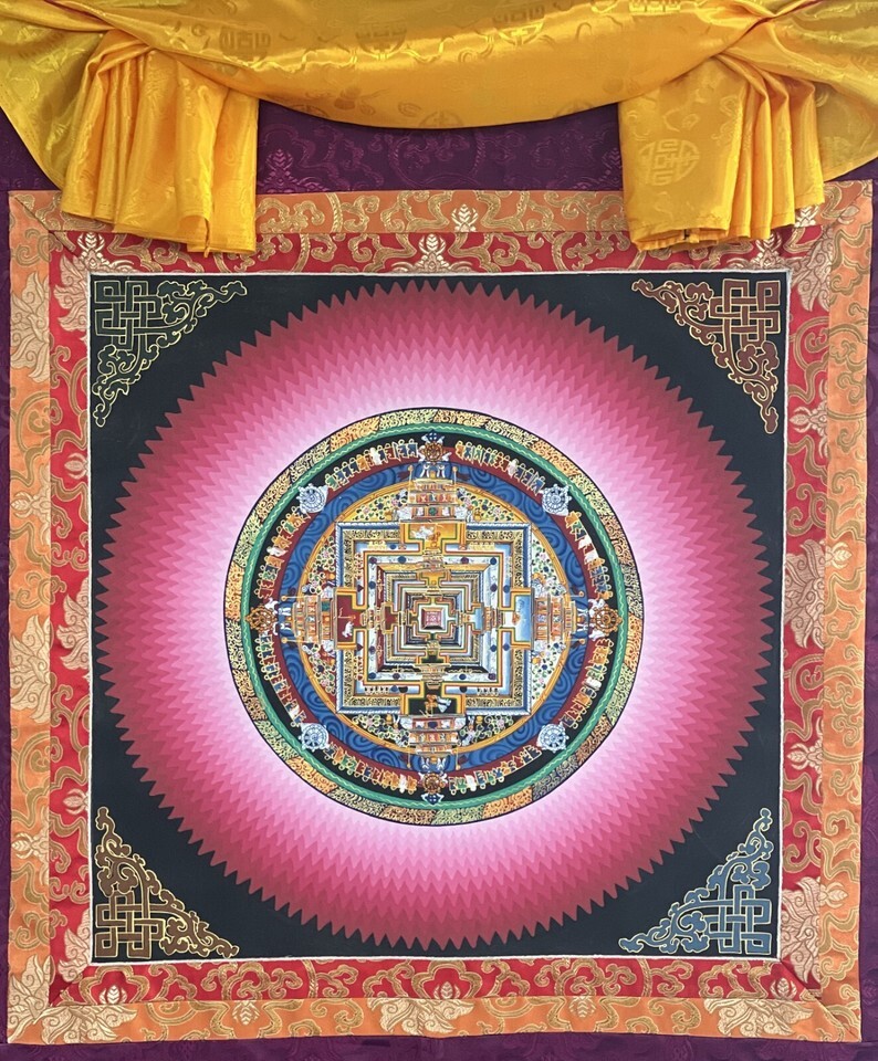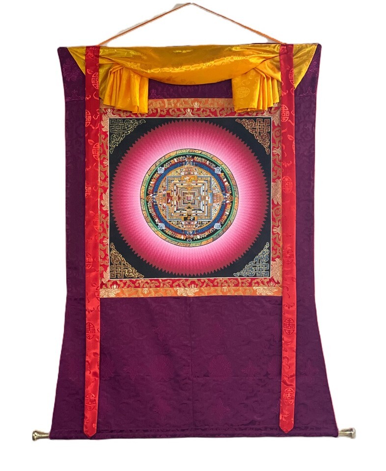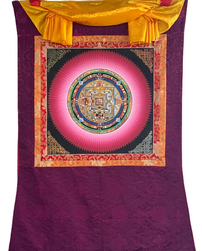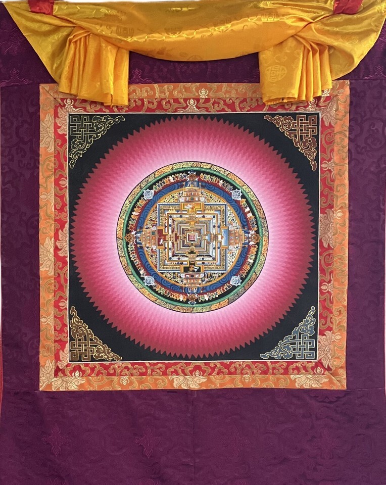 - RAINBOW KALACHAKRA MANDALA ORIGINAL TIBETAN THANGKA PAINTING WITH SILK BROCADE