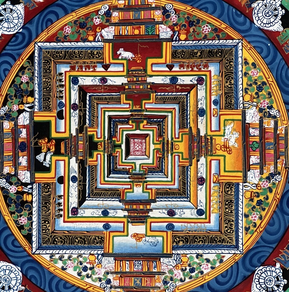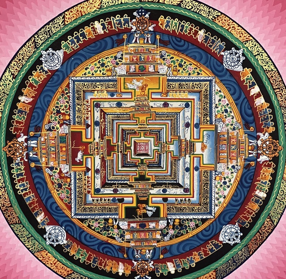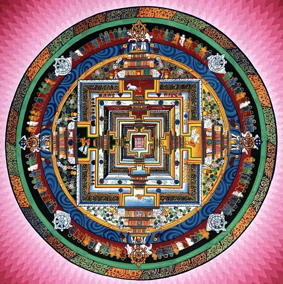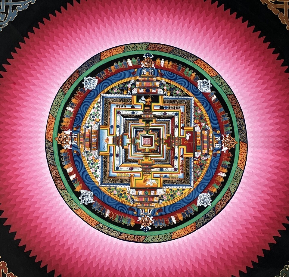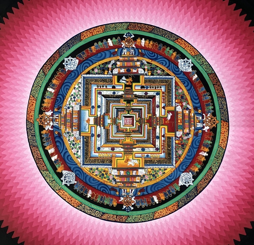- RAINBOW KALACHAKRA MANDALA ORIGINAL TIBETAN THANGKA PAINTING WITH SILK BROCADE