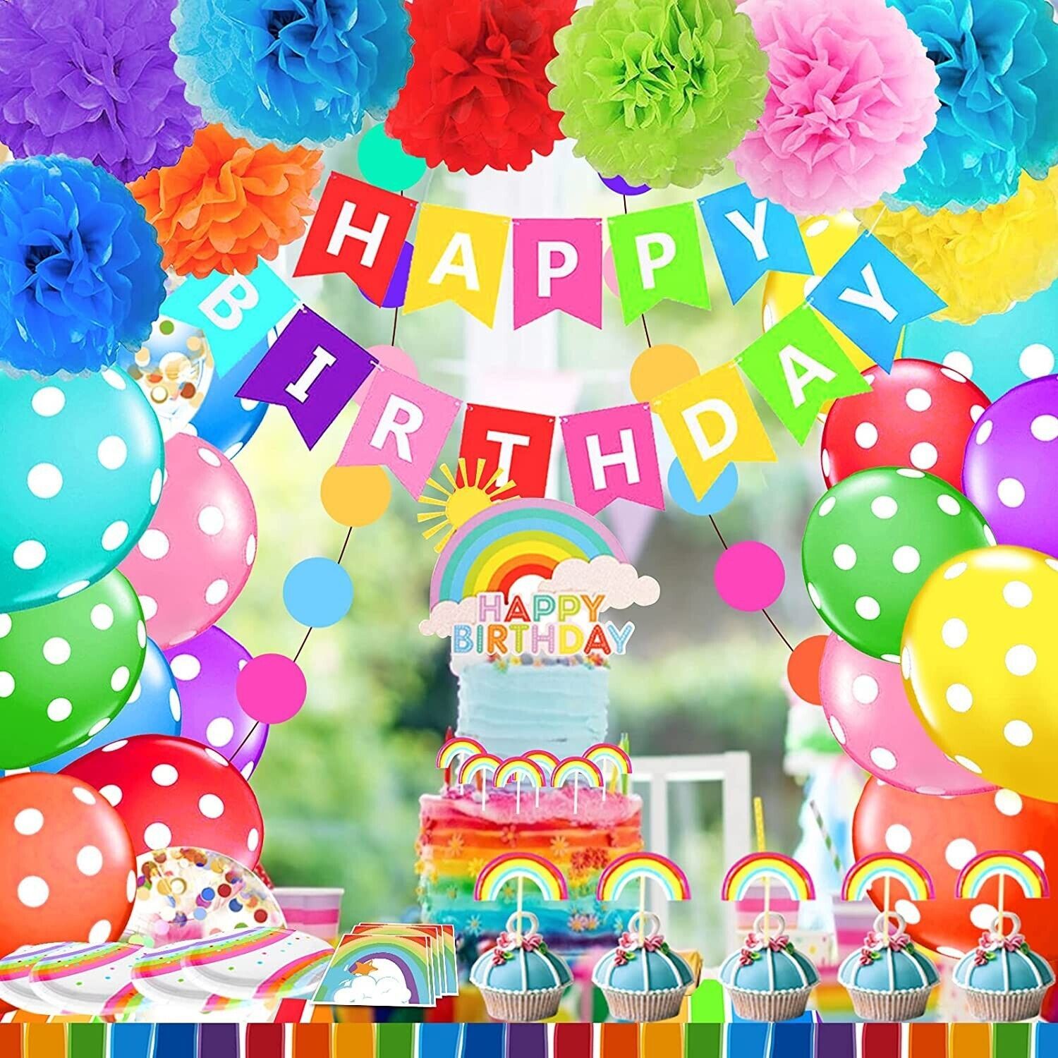 - Rainbow Party Decorations Birthday Party Supplies Banner Tablecloth Napkins Poms