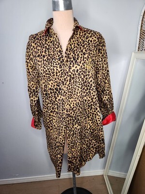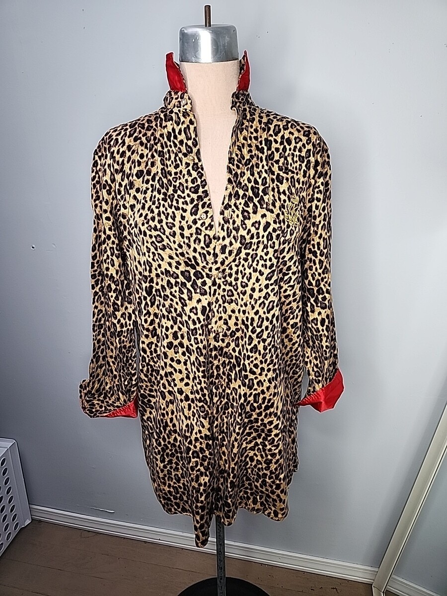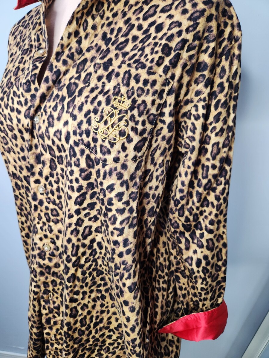 - Ralph Lauren M Leopard Print Sleepshirt Embroidered Logo Red Trim NEW