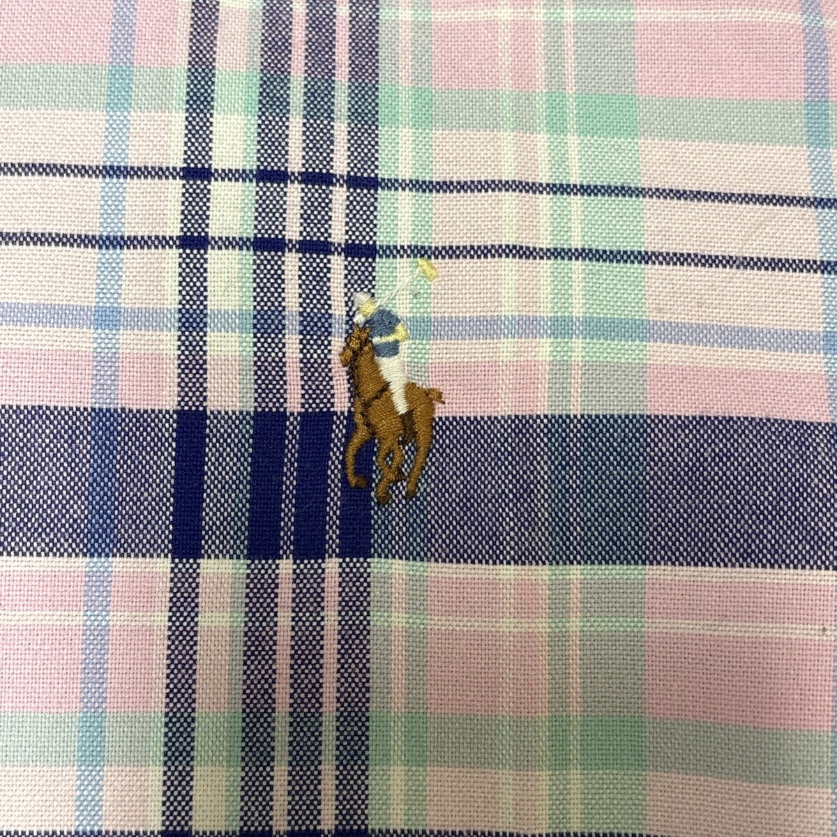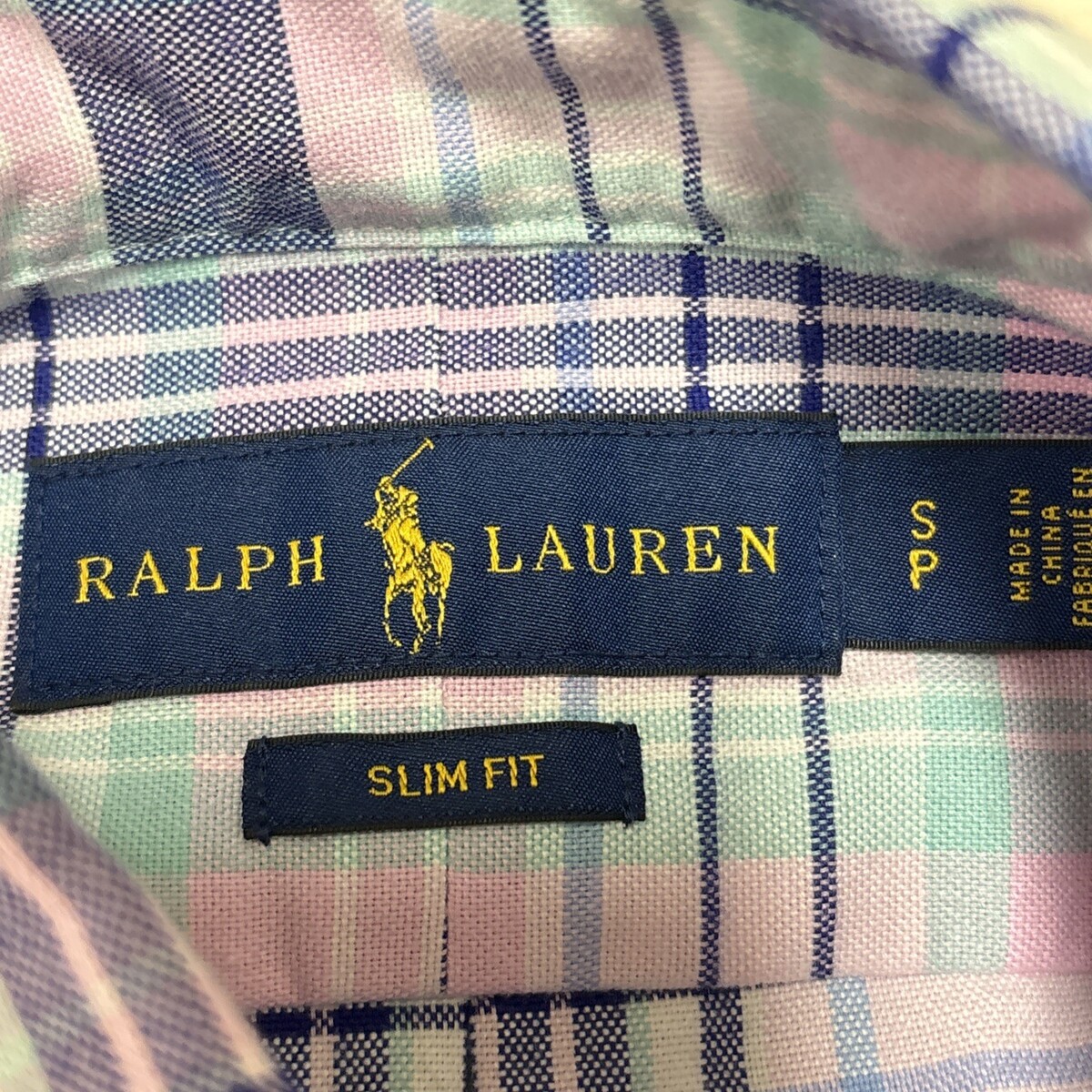 - Ralph Lauren Plaid Shirt Mens Sz S Slim Pink Green Blue Long Sleeve Button Down