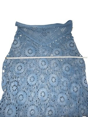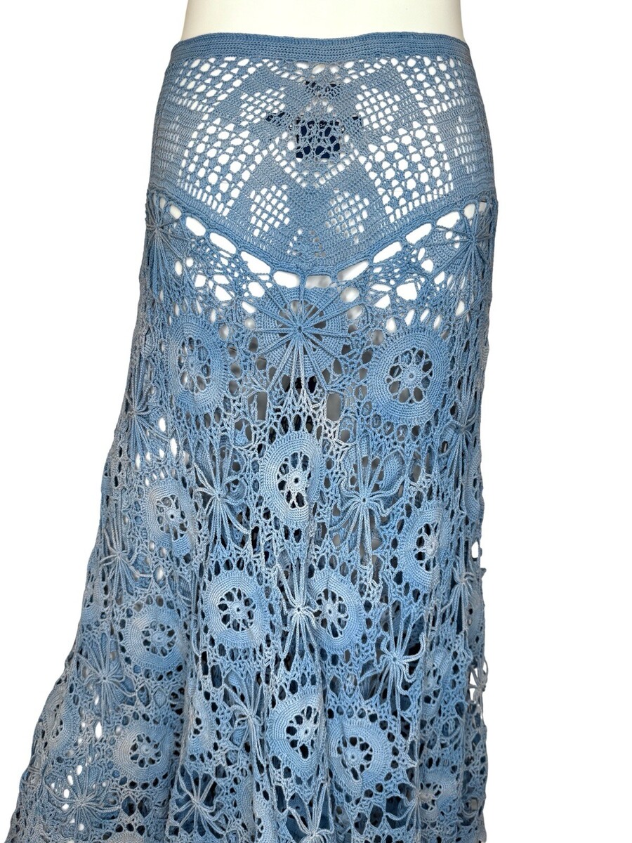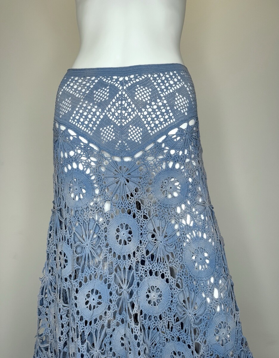- Ralph Lauren Vintage Size L Blue crochet Lace Bohemian Skirt Hand Knit Cotton