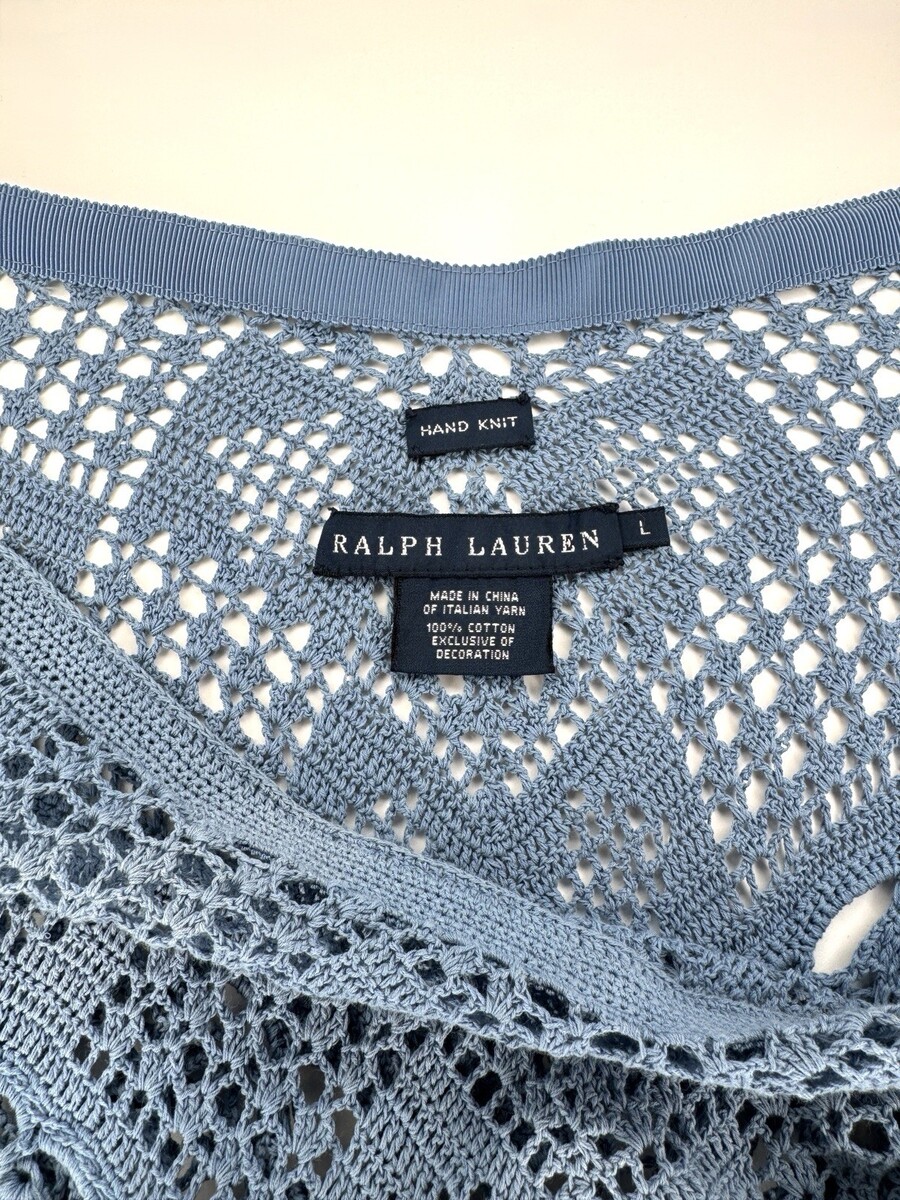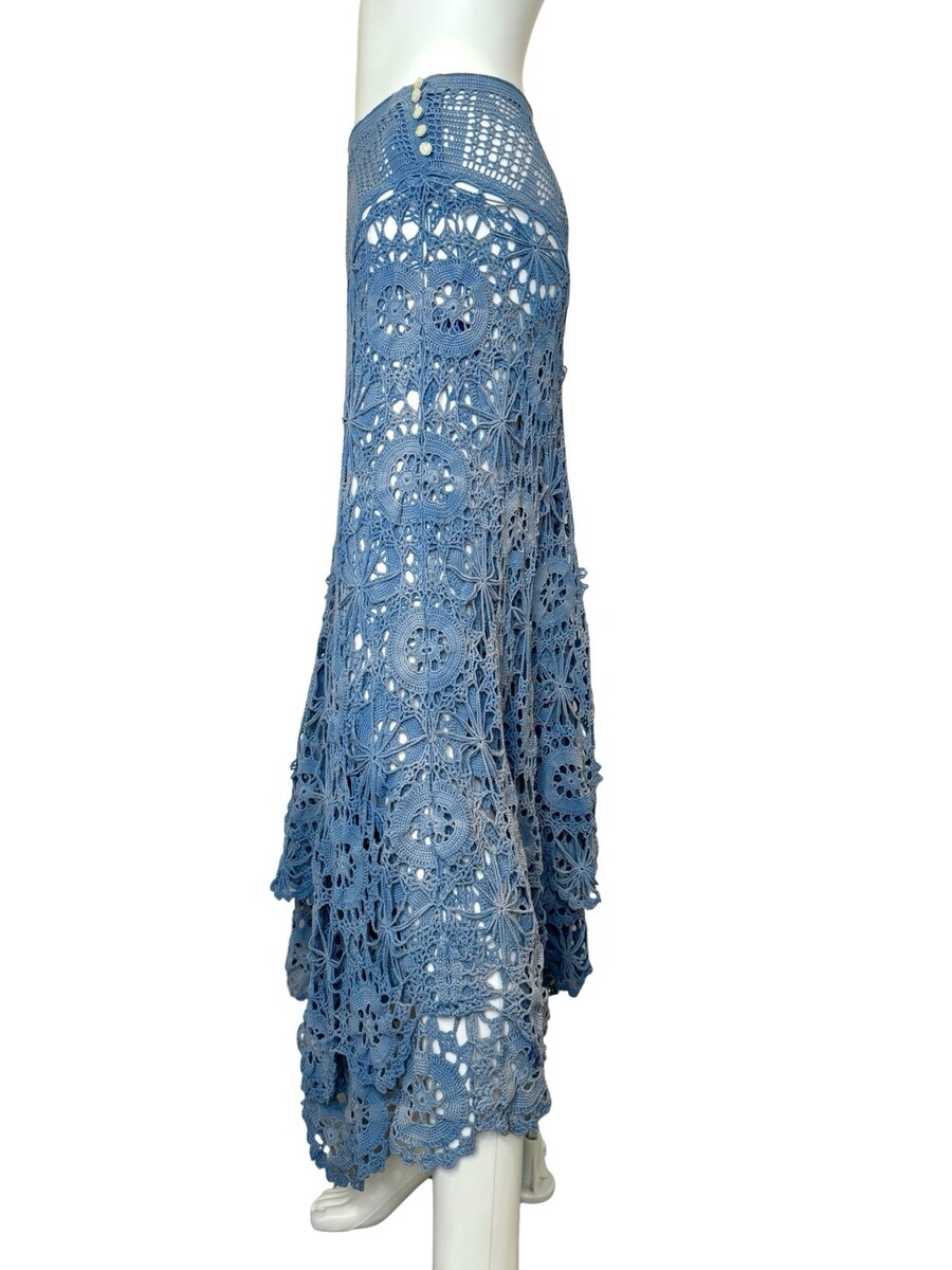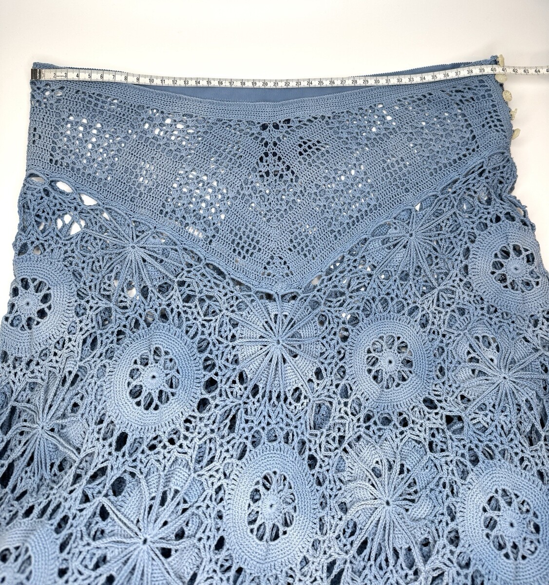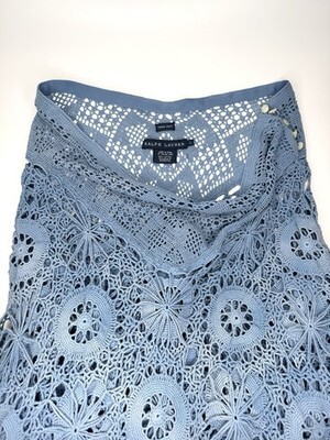 Ralph Lauren Vintage Size L Blue crochet Lace Bohemian Skirt Hand Knit Cotton
