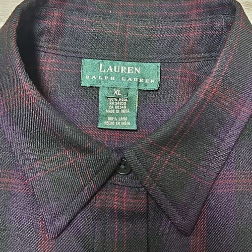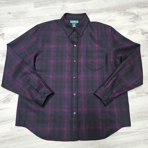 #RalphLauren #WoolFlannelShirt #WomensXL #PurpleRed #ShadowPlaid LongSleeve