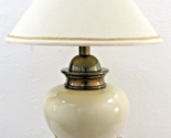 Rare 1979 Chapman Chinoiserie Cream Ceramic and Brass Table Lamp and Linen Shade