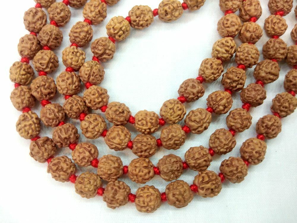 - Rare 4 Mukhi Rudraksha Mala / Four Face Chikna Beads - 108+1