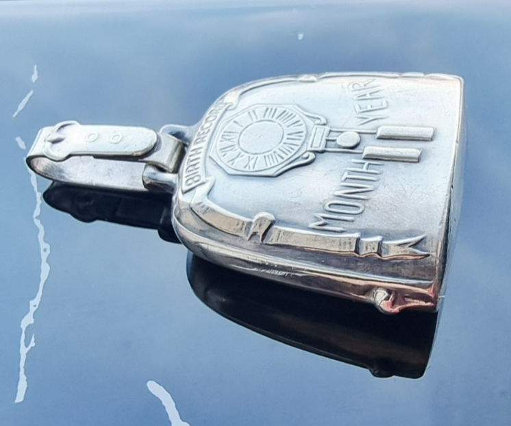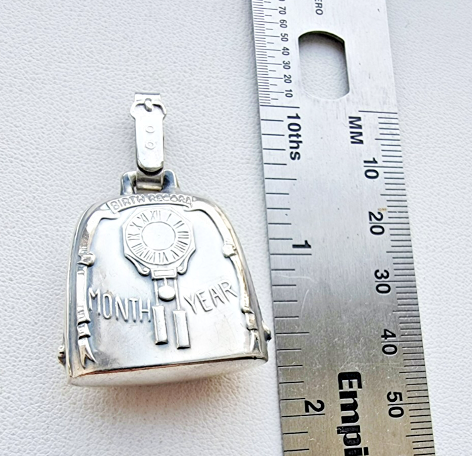 - RARE 925 STERLING SILVER BIRTH RECORD BABY RATTLE, BELL UNIQUE NEW PARENT GIFT