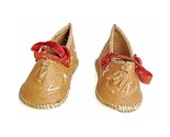 Adorable and rare,these shoes are made of some sort of bark,perhaps birch, hand made by Chippewa Indians in 1920, as indicated on the bottom. They have red silk ribbon decorations and look to have never been worn. Cat not included!( photos taken at another location)