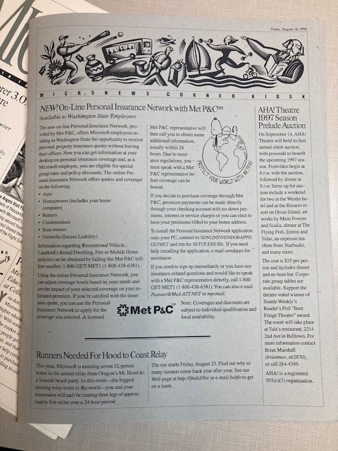 Rare August 1996 Microsoft MicroNews Microsoft finds lost cat!!