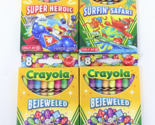 for a lot of 4 Target exclusive pick your pack Crayola 8 packs. You get 2 bejeweled, 1 surfin' safari, and 1 super heroic. All new and unused.