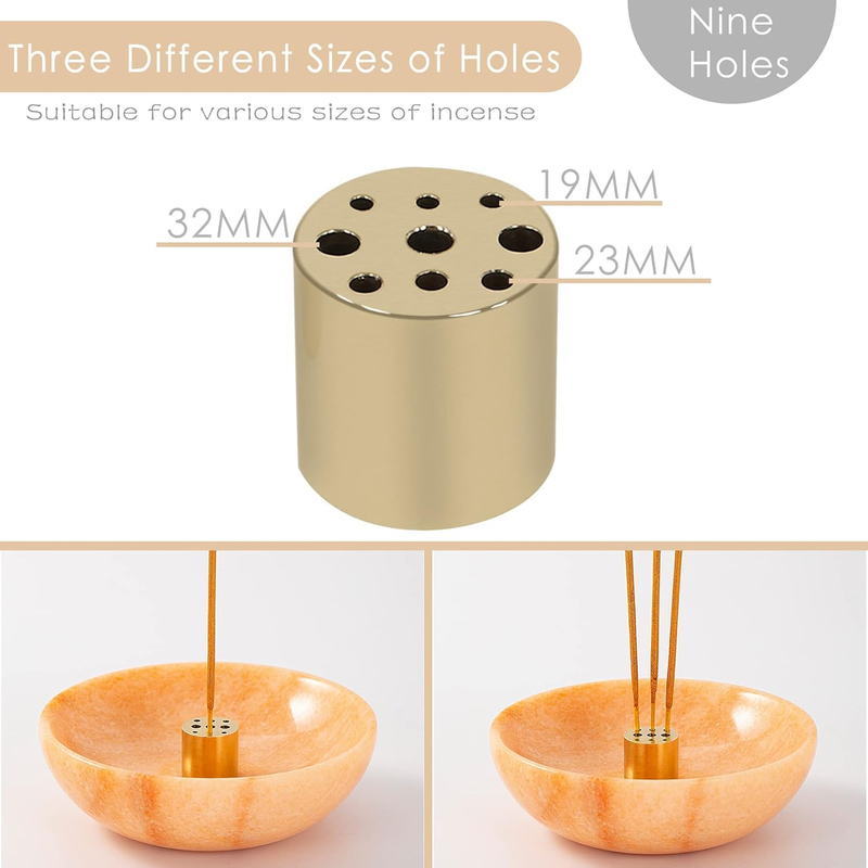 ?Suitable for all kinds of incense?9-hole incense inserts have three apertures, 19mm, 23mm, 32mm meet a variety of incense such as Indian incense, Japanese incense, etc. It can ensure that most incense sticks stand vertically and do not tilt, and will not drop the incense ash on the table due to tilt.