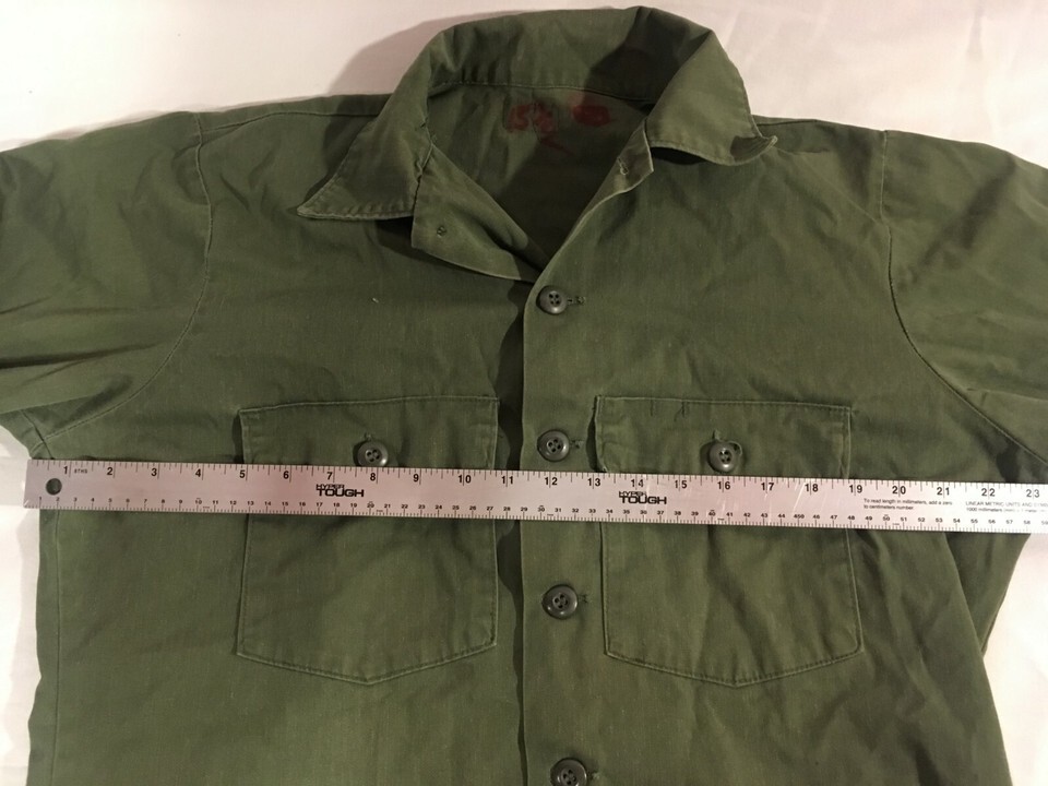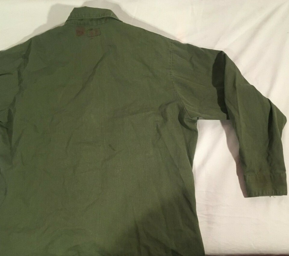 ORIGINAL OG - 507 Shirt went into production right after the Korean War : The Utility Uniform was made primarily for the Vietnam Era and used During the War and was replaced by the OG 107 Utility Shirt Top Blouse Jacket in the same Era. Each OG 507 Shirt are Original and Authentic, Some are in Perfect Condition, some have minor defects that do not take away from the operation of the Shirt, Some have certain Stains, Some have Minor Holes that are pointed out in each picture, just know that these are Original Regulation OG 507 Tops that were Mass produced in 1959 thru 1967, they are no longer produced . Originally there were many Contractors that produced the shirts, but now they are a collectible . Each one of our shirts came from a lot in Fort Bragg NC Sold at a DRMO SALE . Each Shirt was worn by a Soldier at one time. Some Shirts were turned in by Units Serving in the 82nd Airborne and Coscom. that is what it said outside the box these came in.