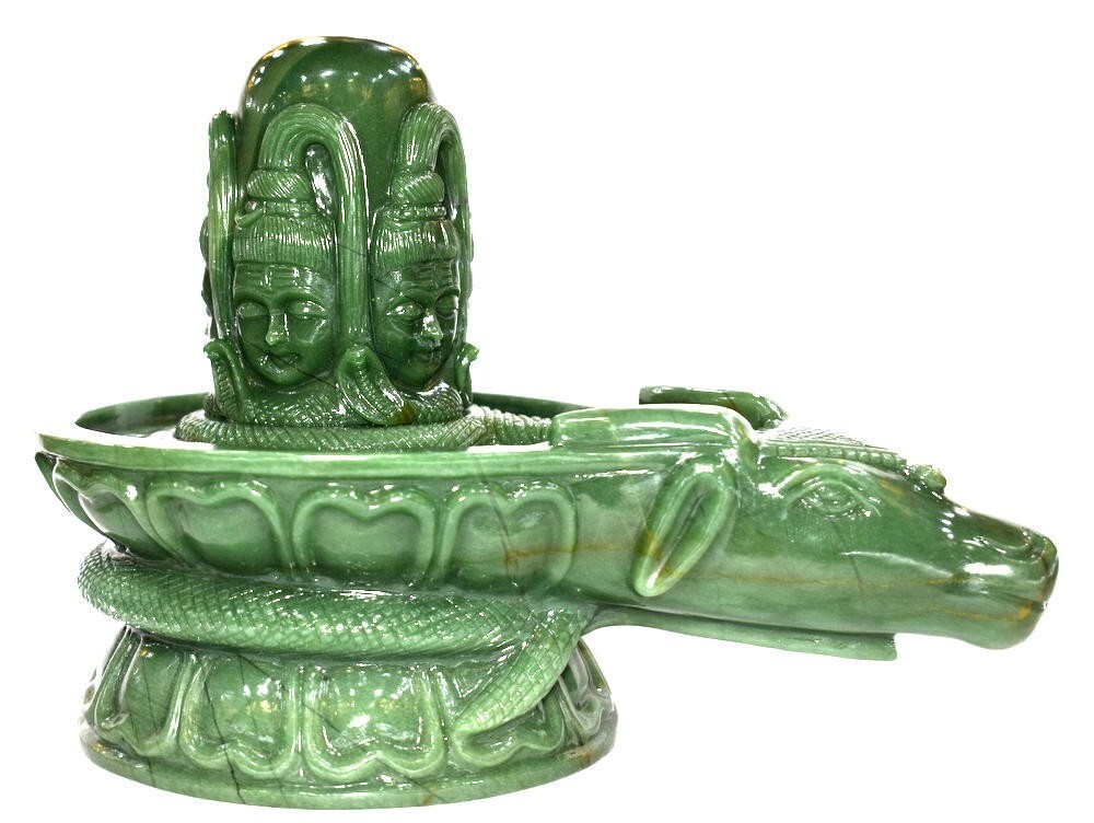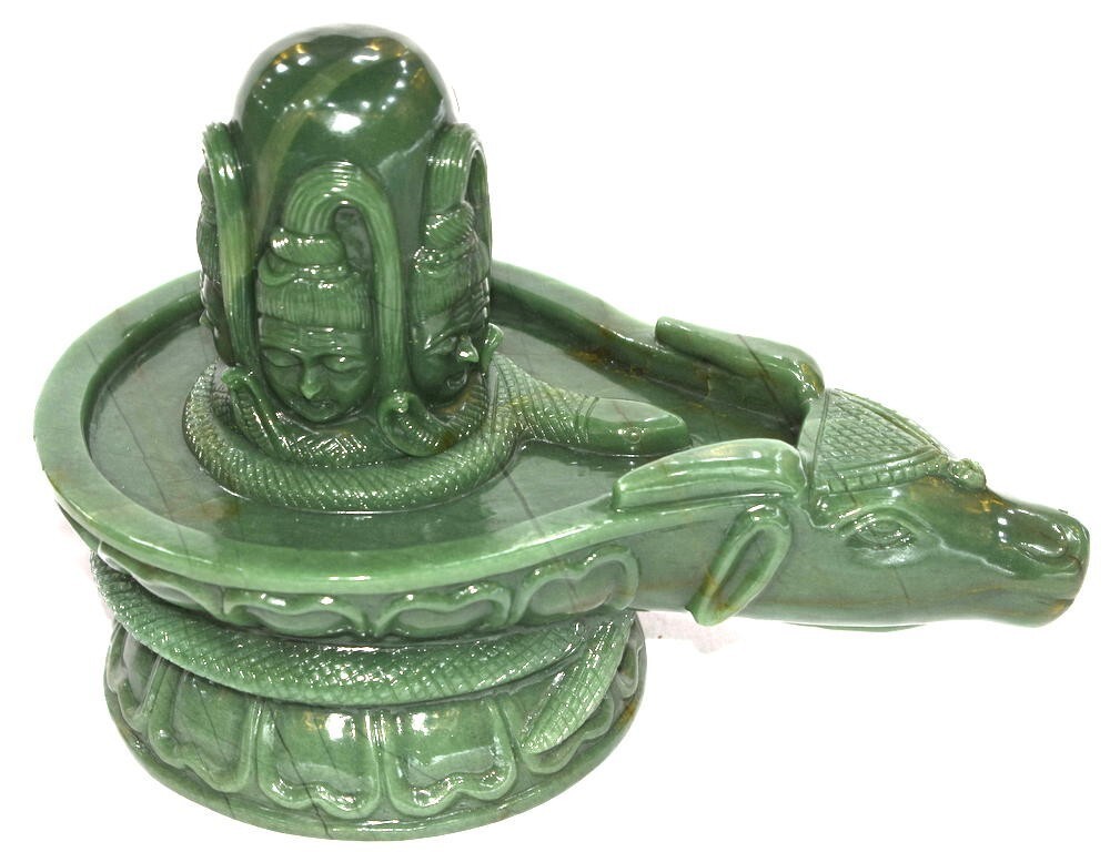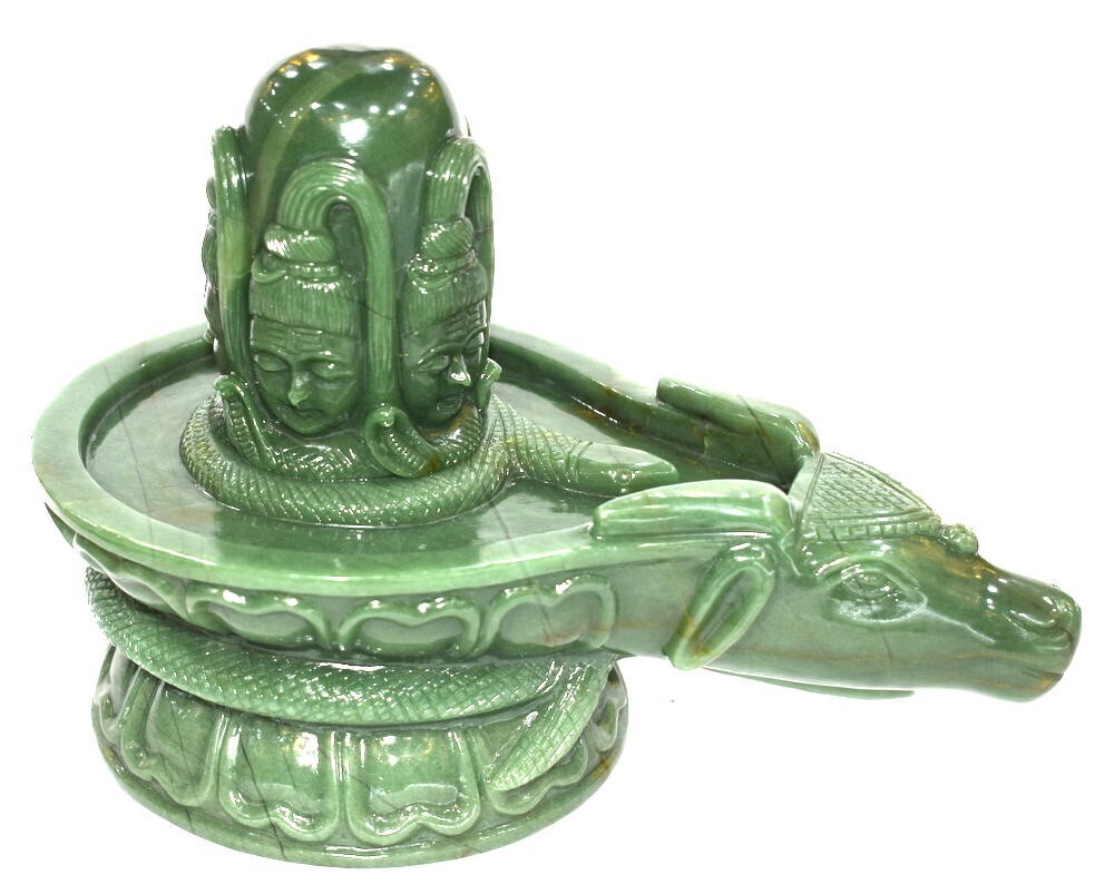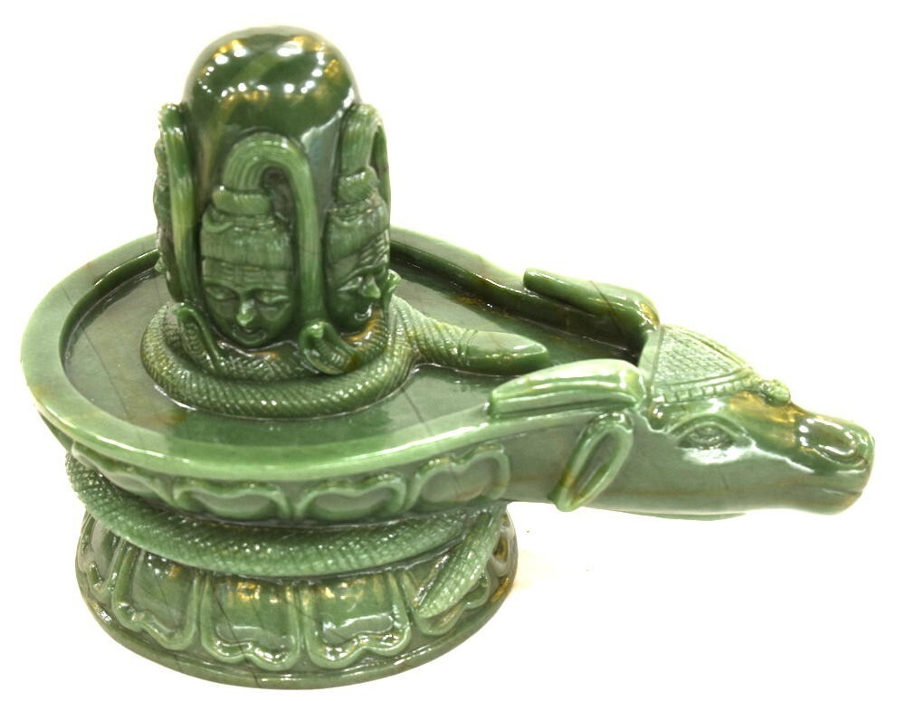 Design : Pashupatinath Shivling on a Nandi yoni base with snake curled round the neck of the Ling, magnificently and very attractively designed hand work on Green Jade gemstone is considered highly auspicious and is said to have one of the highest frequency vibration rate. Blesses home with love, harmony and abundance. Shiva lingam connects a devotee with the Supreme Being Lord Shiva.