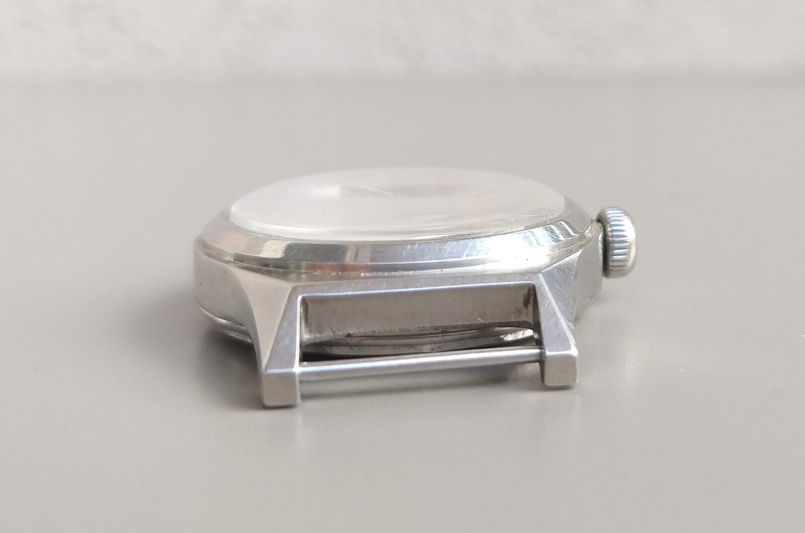 This all steel case measures 30mm without crown x 40mm lug tip to lug tip.