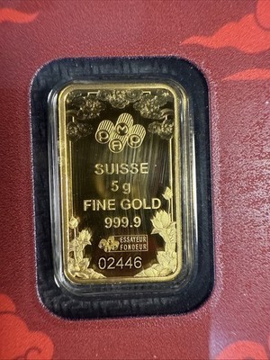 - RARE YEAR OF THE DRAGON P.A.M.P. Suisse 5 Gram .9999 Fine Gold Bar In Assay