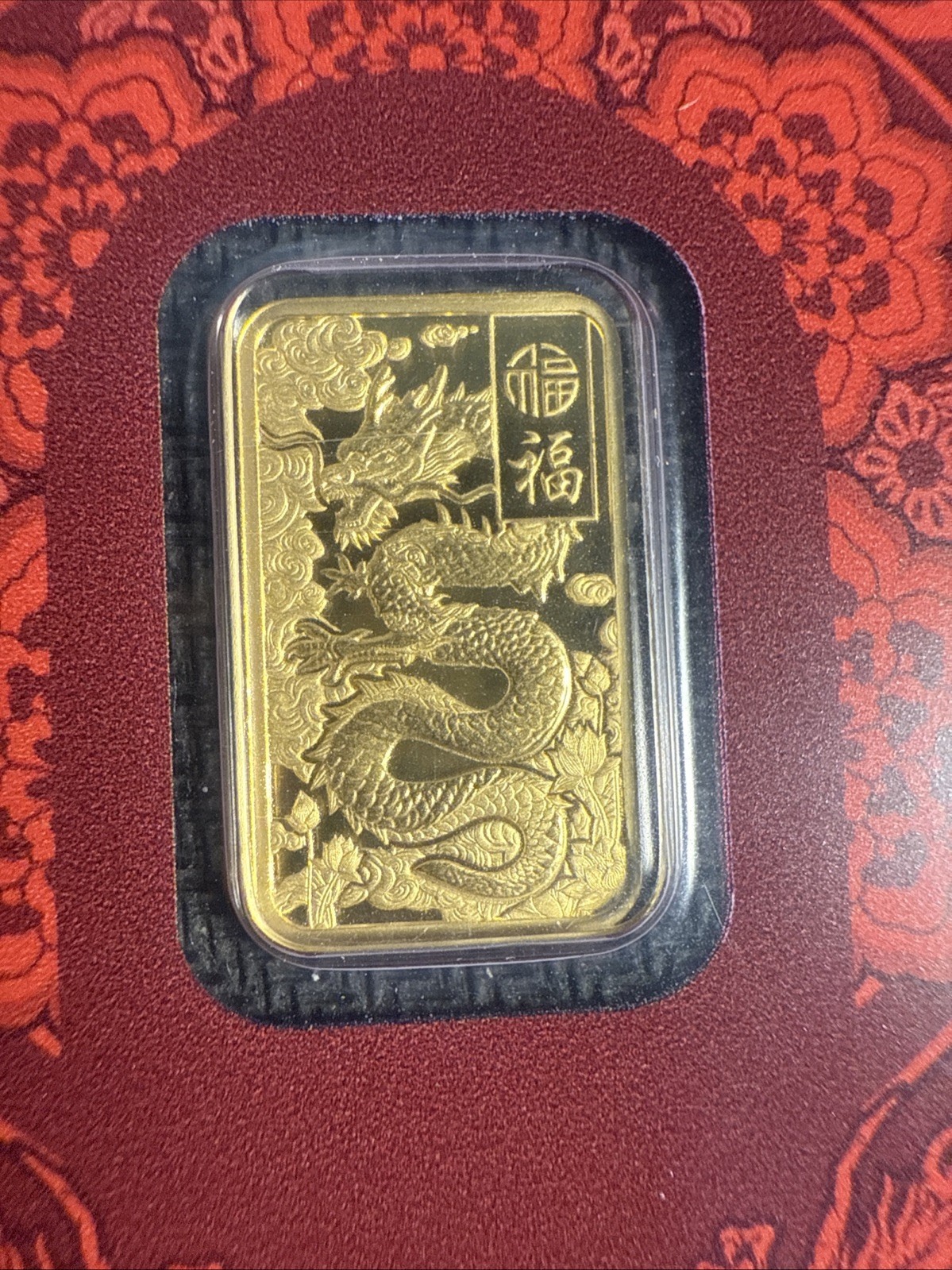 The product is a rare Year of the Dragon P.A.M.P. Suisse 5 Gram .9999 Fine Gold Bar produced by Pamp Suisse in Switzerland. This gold bar has a fineness of 0.9999 and contains 5 grams of precious metal content per unit. It features a unique design celebrating the Year of the Dragon and is a valuable addition to any collection of coins and paper money.