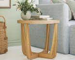 Rattan Glass Side Table with Solid Wood Frame by Drew Barrymore, Warm Honey Finish