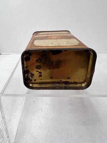 tin has some surface wear and tiny dents but please note the rust/wear to top/bottom