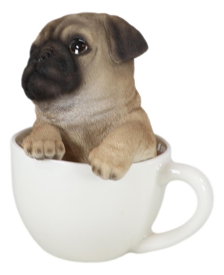 - Realistic Adorable Pug Dog Teacup Statue 5.5" Tall Pet Pal Puppy Pugs Figurine