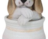 Realistic Tri Color Beagle Puppy Dog Figurine With Glass Eyes Pup In Pot