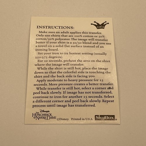 - Rebel Heroes #5/6 Disney Hunchback Of Notre Dame 1996 Skybox Tattoo KG JD