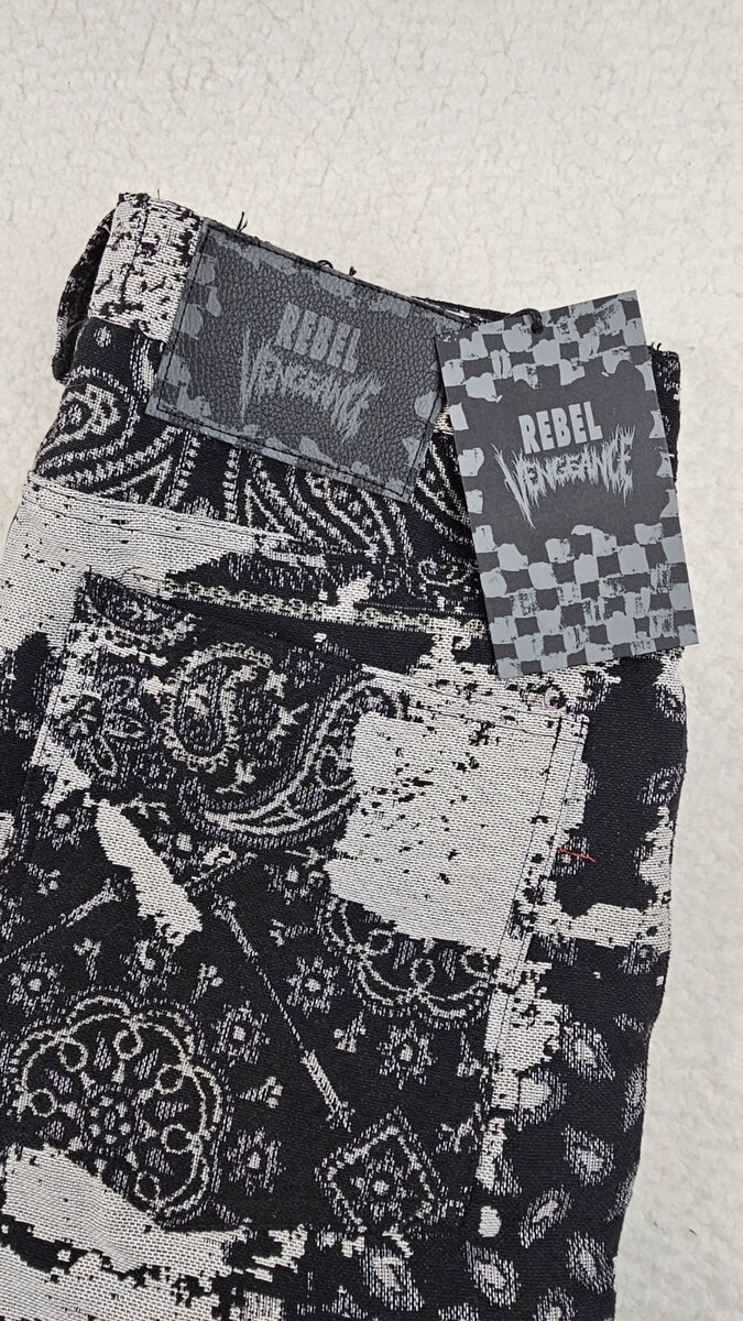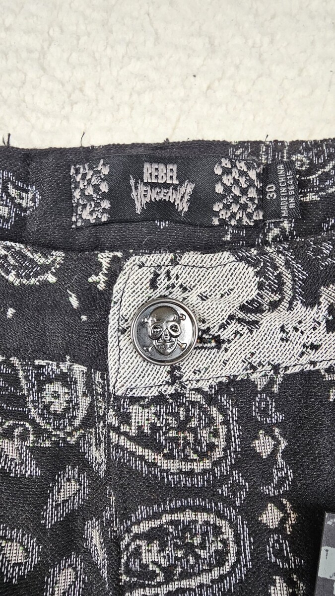 - Rebel Vengeance Tapestry Goth Cargo Pants Mens 30 Fringe On Sides