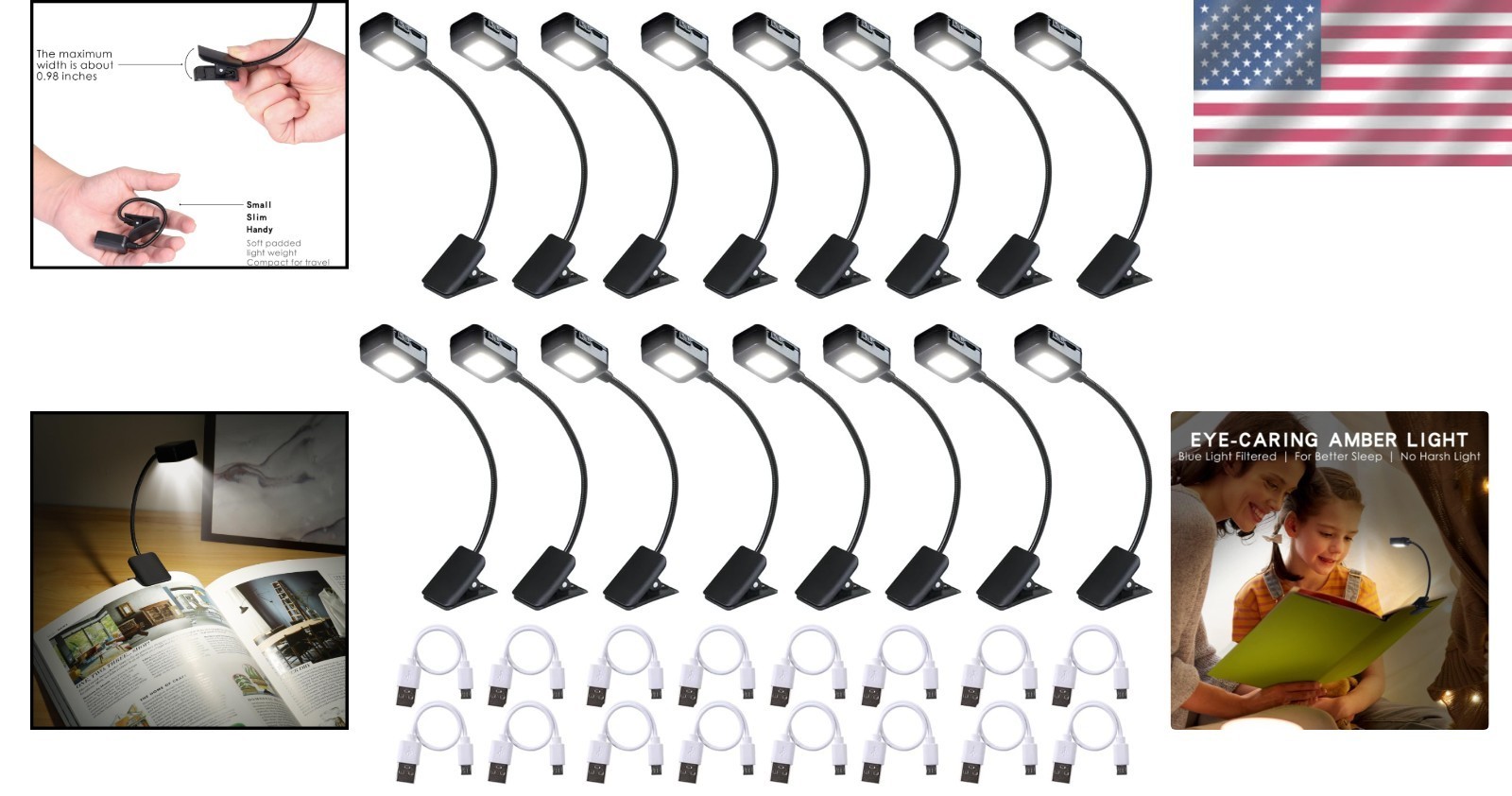 Rechargeable Book Light - 16 Pack Clip-On Reading Lights