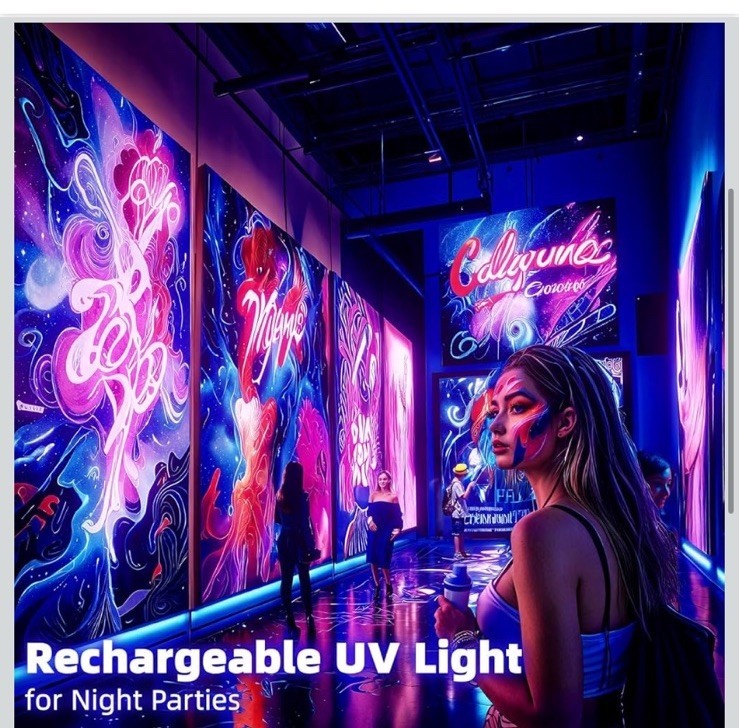 - Rechargeable Cordless UV Black Light for Parties, Aquariums, and Body Paint 2 Pc