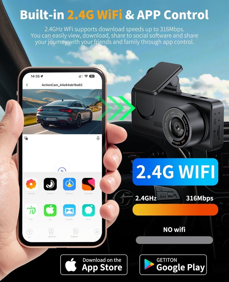WiFi Smart App Control:Easily connect the S16 front dash camera to your smartphone via WiFi and control everything through the app. Compatible with both iOS and Android, this dash cam allows you to view, playback, and download recordings seamlessly. With WiFi, enjoy fast video transfers from the dual dash cam. The app also enables one-click sharing of your footage, making it perfect for reliving and sharing memorable drives.