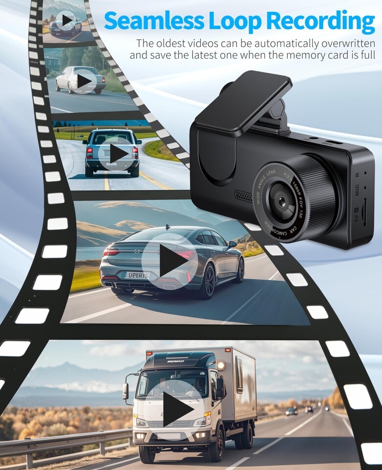 Car Camera: When the storage limit on the card is reached, the latest record will automatically overwrite the old record. Automatically detects sudden shocks/collisions and locks emergency footage to prevent video from being overwritten during loop recording. Thanks to the heat-resistant chipset and adhesive pad, the car dashcam can be well attached to the windshield at extreme hot or cold operating temperatures from -40 F to 185 F.