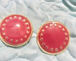Red And Gold Tone Stars Round Statement Clip On Earrings