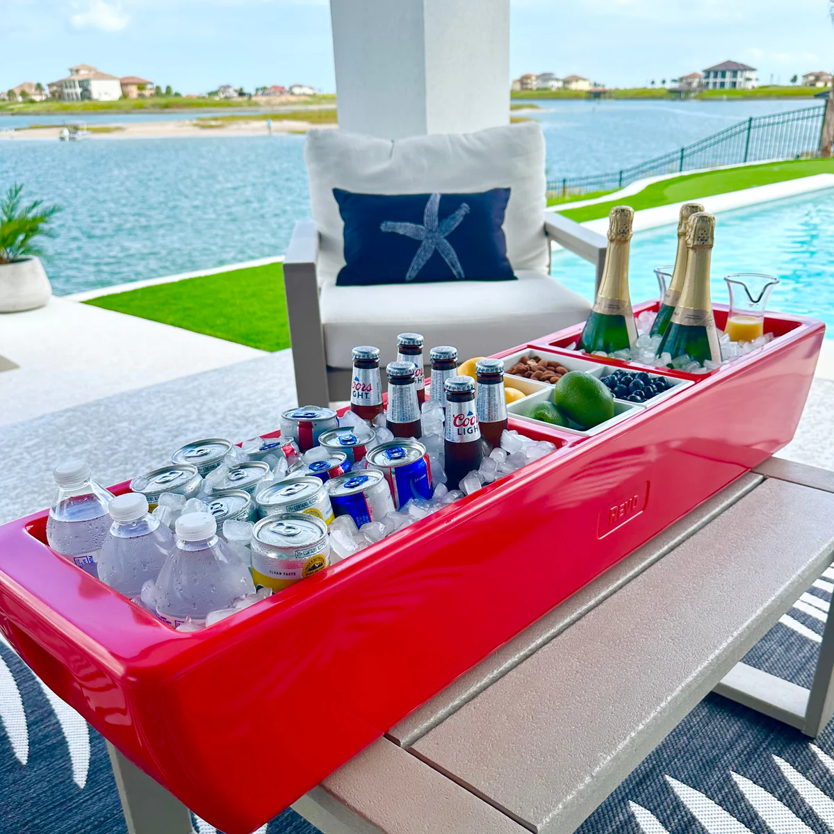 - Red Barge Cooler Indoors Outdoors bar Holiday Tailgating Parties Red Bar Display