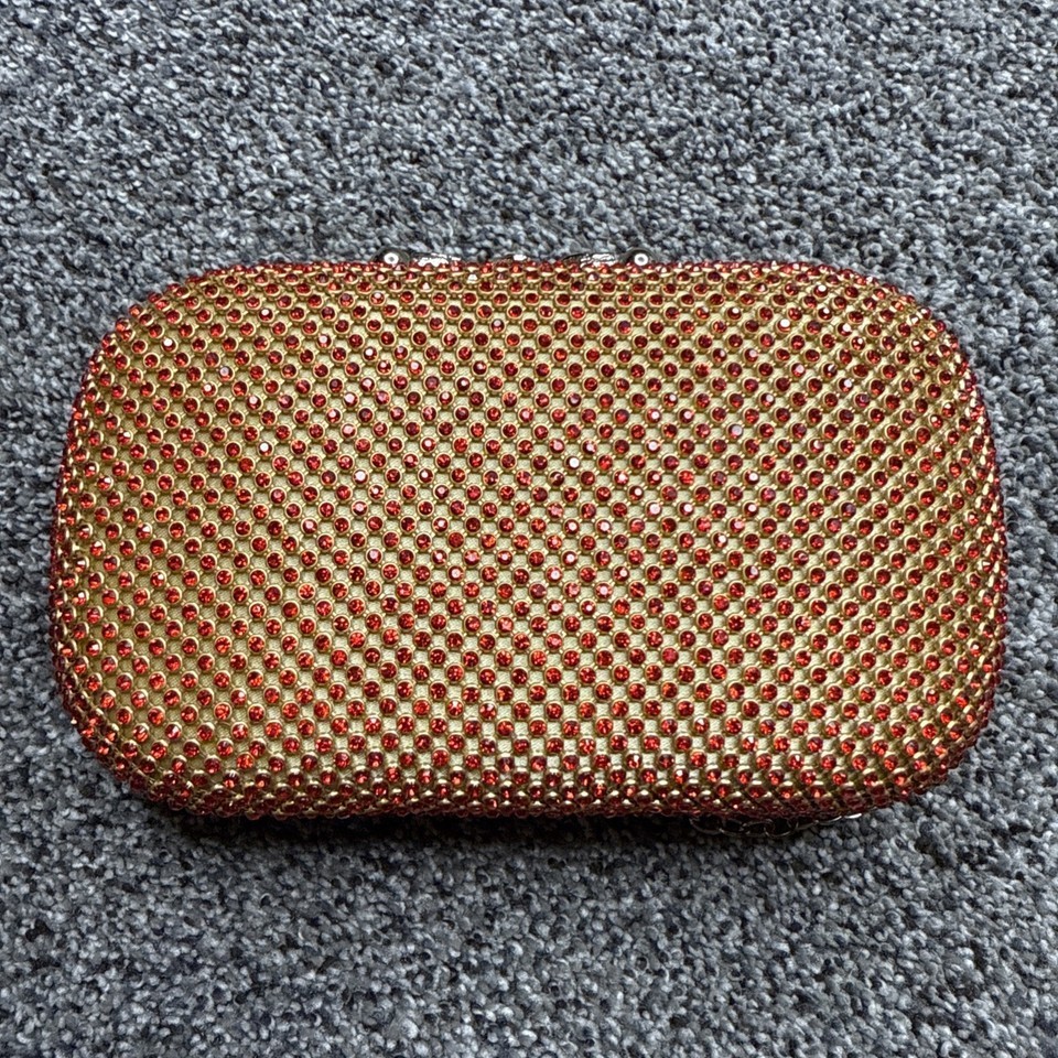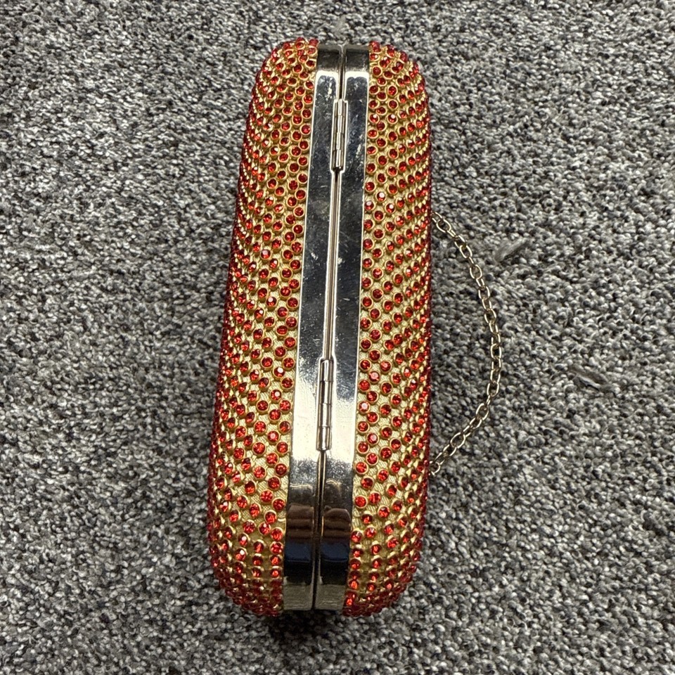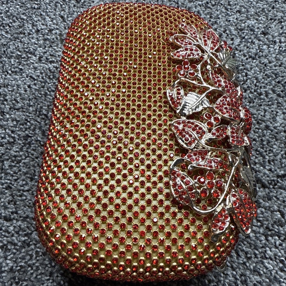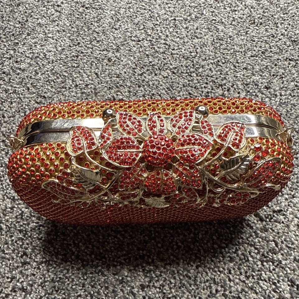 - Red Crystal Rhinestone Bejeweled Metal Clasp Clutch Purse 6.5”x4” - Heavy 12oz