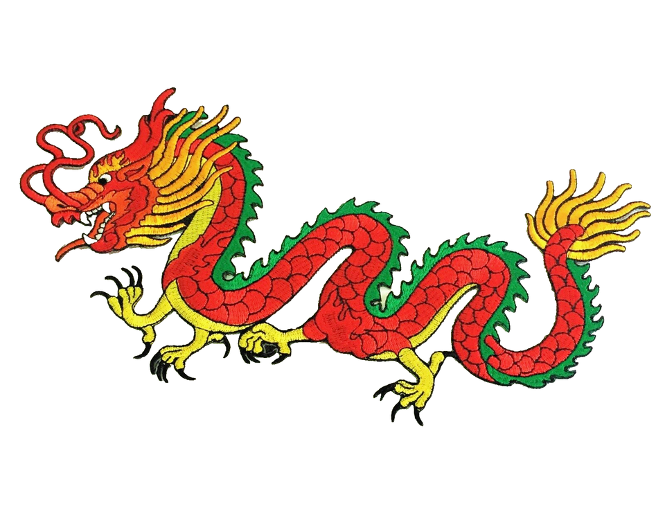 - Red Dragon Pattern Embroidered Patch Fantasy Collectible Iron On Applique 9 Inch