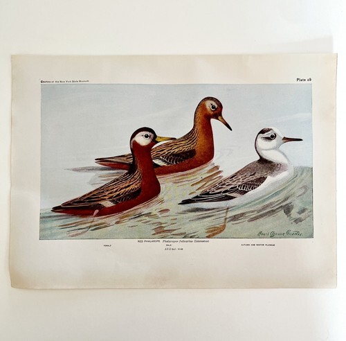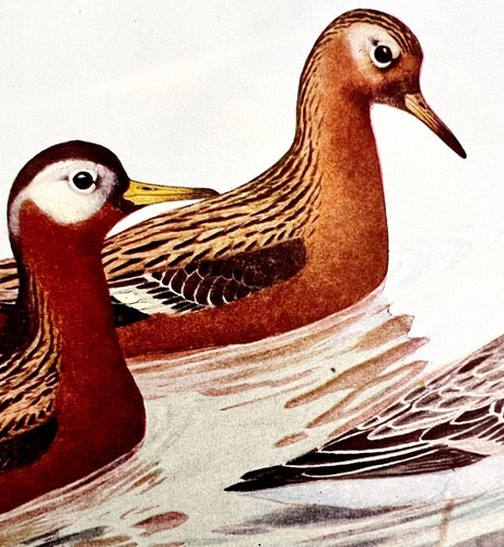 - Red Phalarope Shorebirds 1936 Bird Lithograph Color Plate Print DWU12B
