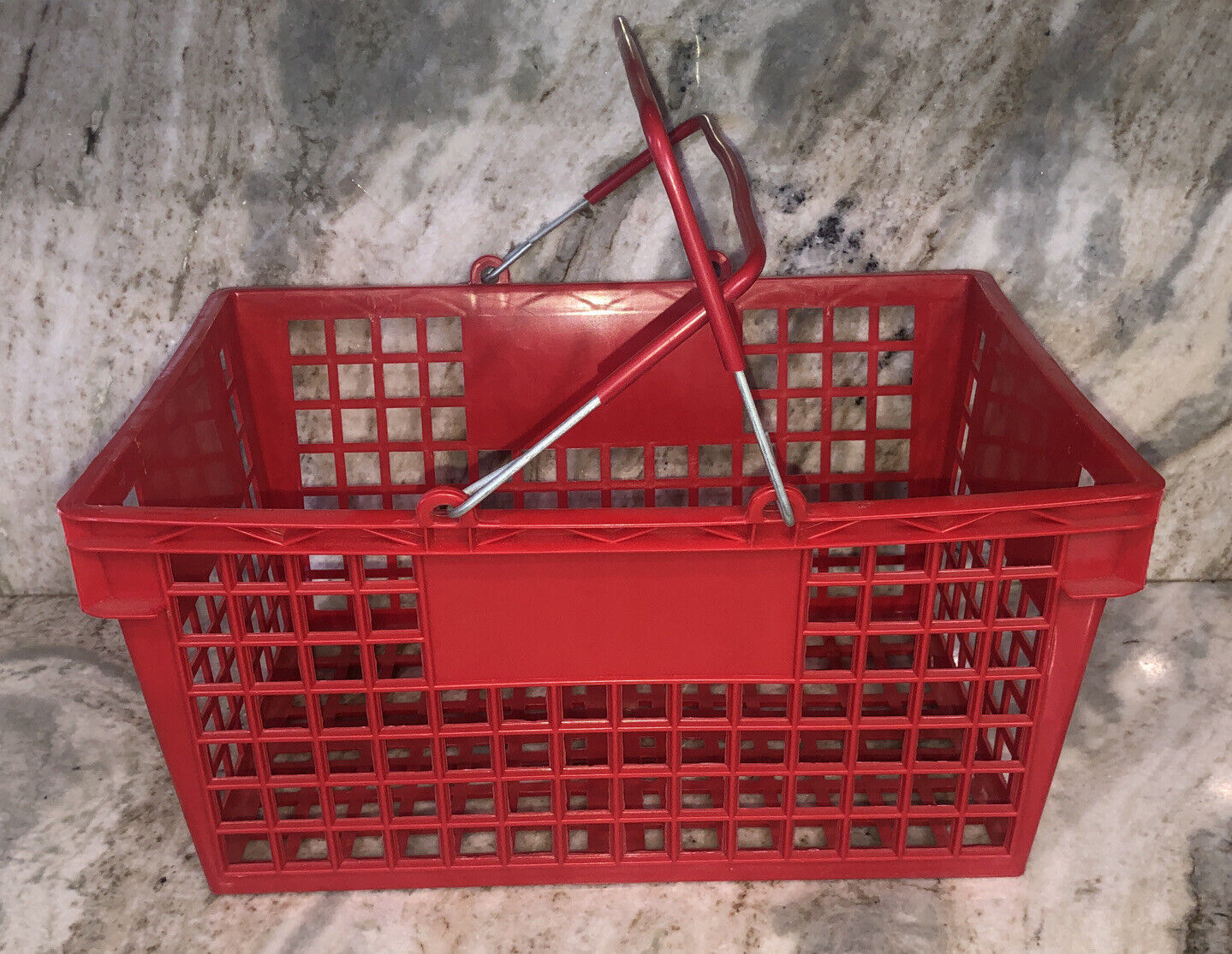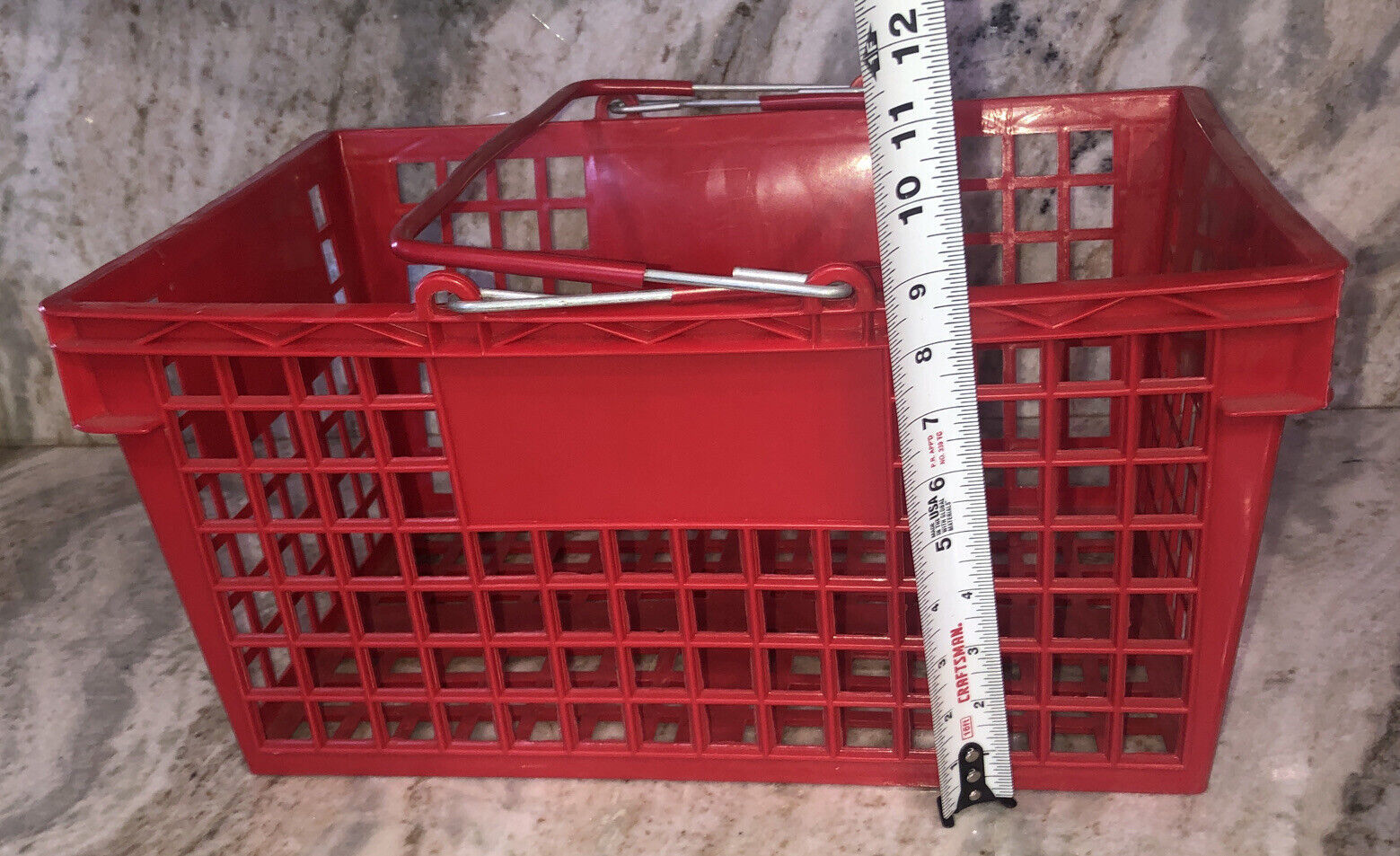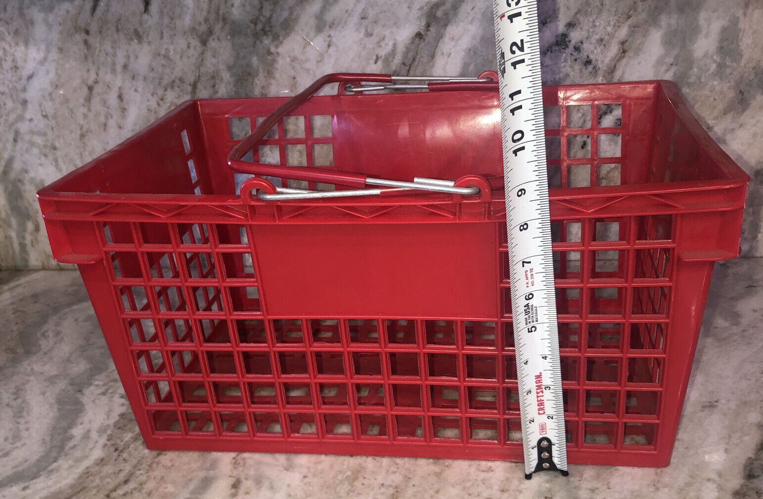 You Will Receive 1 ea Red Plastic Shopping Basket Market Grocery Retail Store Supplies Size: Basket: 12?W x 17?L x 8?D-Used-SHIPS N 24 HOURS.