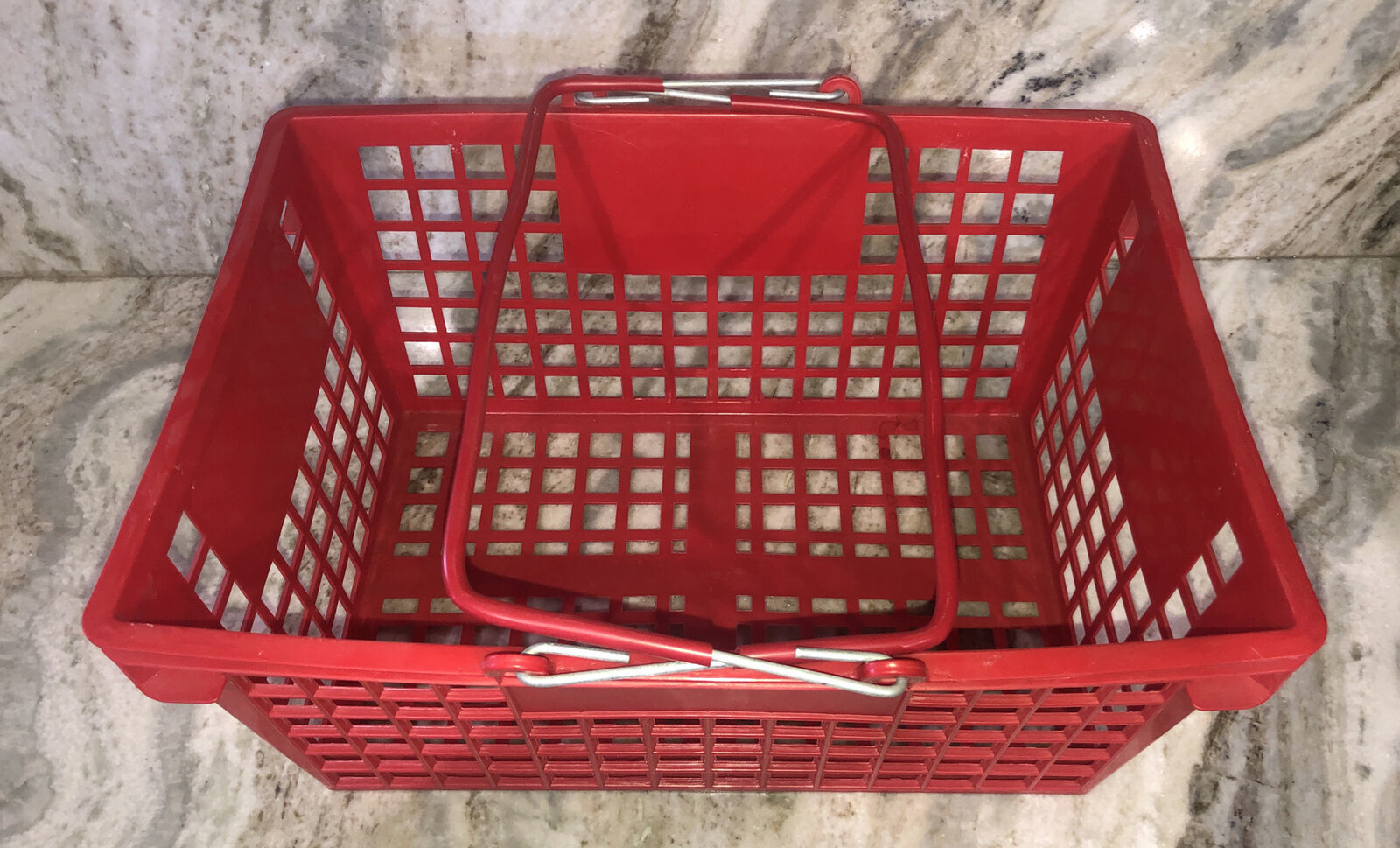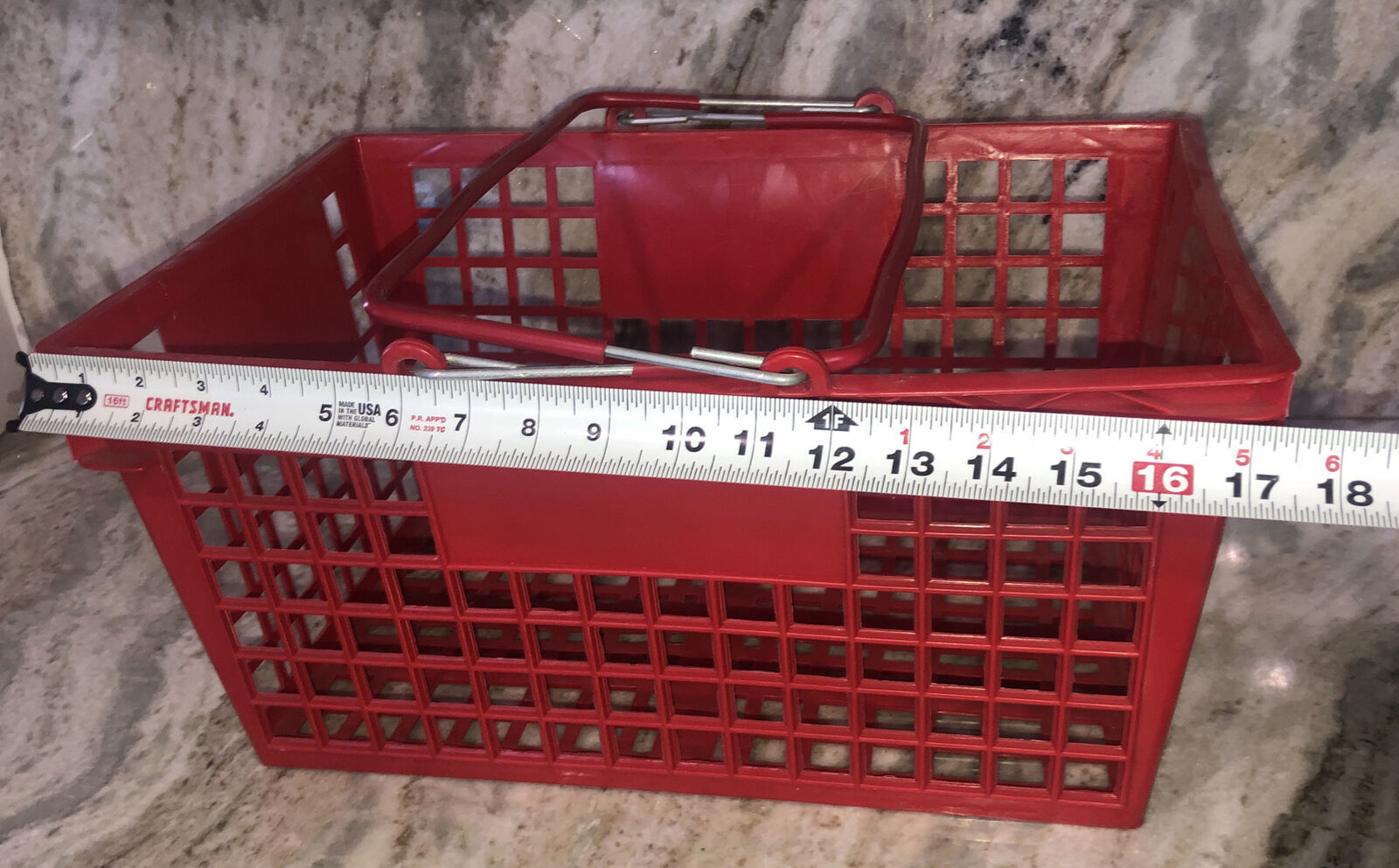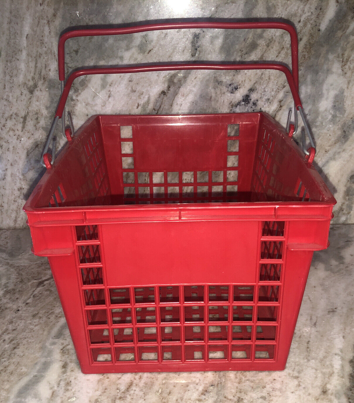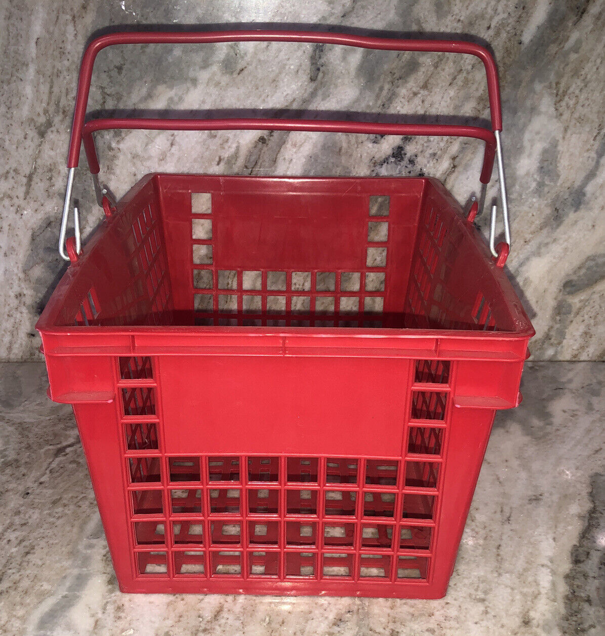 You Will Receive 1 ea Red Plastic Shopping Basket Market Grocery Retail Store Supplies Size: Basket: 12?W x 17?L x 8?D-Used-SHIPS N 24 HOURS.