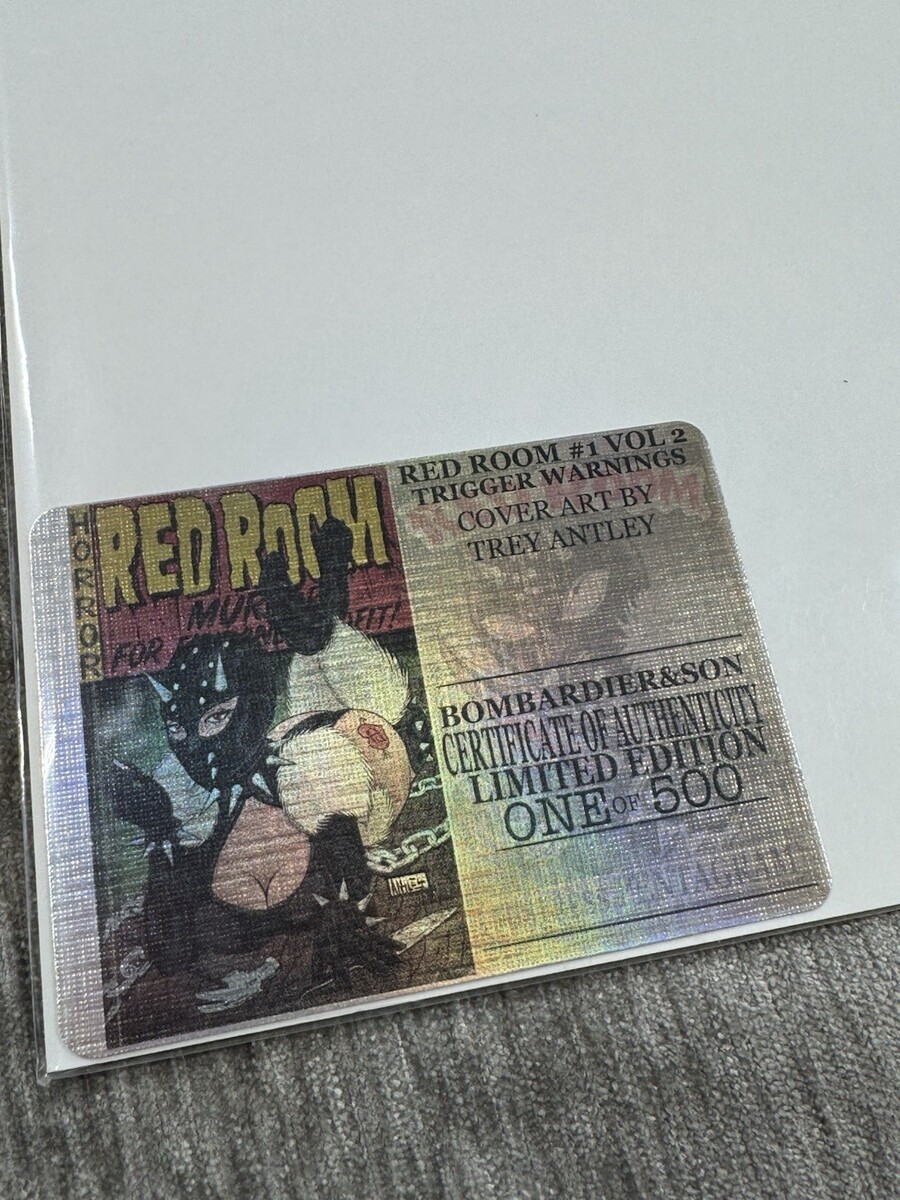 For sale is a RED ROOM TRIGGER WARNINGS #1 TREY ANTLEY PULP FICTION HOMAGE NM - Limited out of /500 w COA