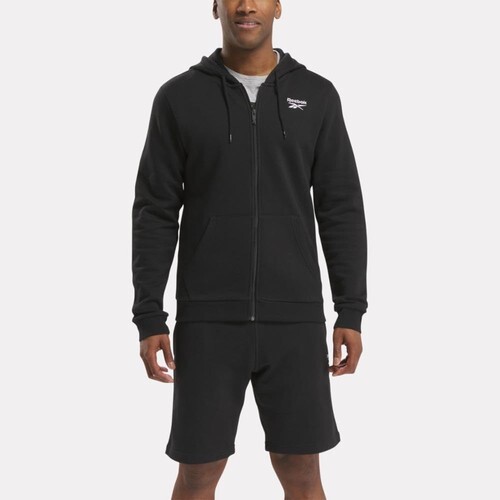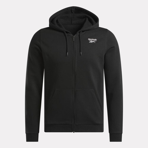 - Reebok Identity Full Zip Hoodie Black Size 2XL Fleece Men Pocket Logo Drawstring