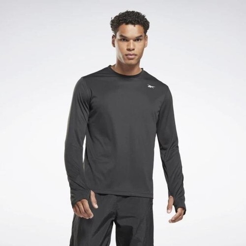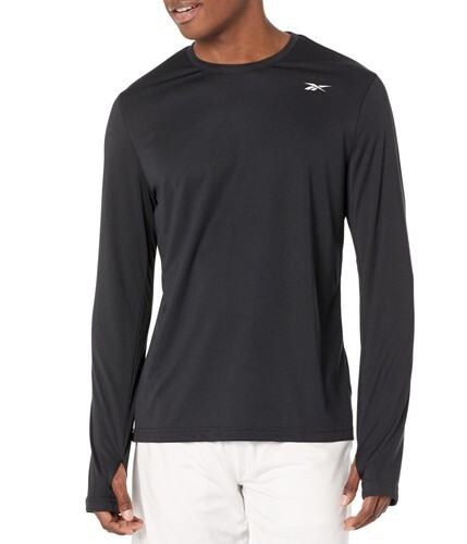 In a straight cut with room to move naturally, this long-sleeve Reebok T-shirt helps you stay dry from warm-up to cool-down.