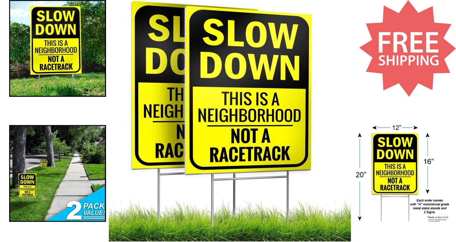 Ensure children's safety with our effective and eye-catching radar speed sign. Designed to encourage drivers to slow down in residential areas, this sign features a double-sided display that's clearly visible from a few feet away. The included sturdy metal H-stake allows for quick and easy installation anywhere you need it. Its humorous yet impactful message, "This is a Neighborhood, Not a Racetrack - Slow Down," serves as a friendly reminder for drivers to be cautious. Ideal as a thoughtful gift for parents or community safety advocates. To ensure fast and reliable delivery, we work with multiple fulfillment partners and suppliers. Depending on availability and location, your order may ship from different warehouses or arrive in packaging that varies from item to item. Tracking details are typically provided shortly after shipment, and customer satisfaction remains our top priority. Please note that due to carrier policies and regional regulations, certain items may not be eligible for delivery to specific states or territories.
