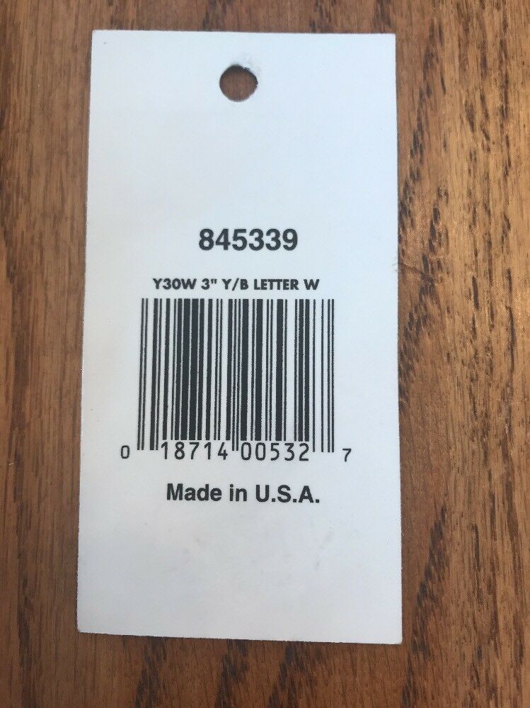 Reflective Letter Y30w 3” Y/B letter W Ships N 24h