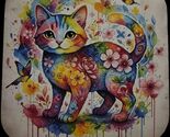- Refrigerator Magnet – Rainbow Floral Cat – Colorful Watercolor Cat Art